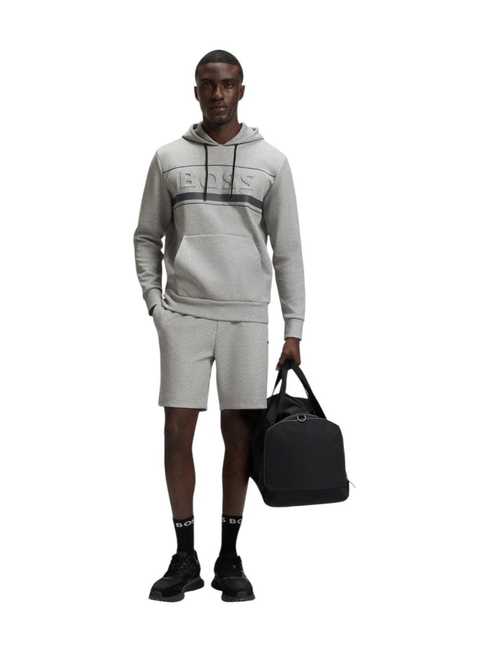 En interlock et stretch, ce sweat à capuche BOSS Homme coupe droite est une pièce décontractée et moderne. Logo moulé et rayures sportives.