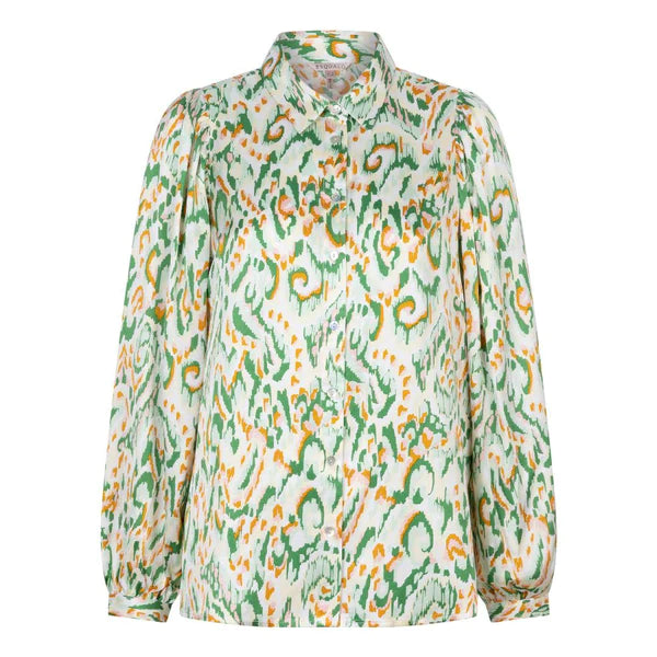 Prix régulier $54.00 CADChemisier à manches longues et bouffantes. Col classique avec boutons. Tissu soyeux non-extensible. Imprimé abstrait. Peut rétrécir au lavage.