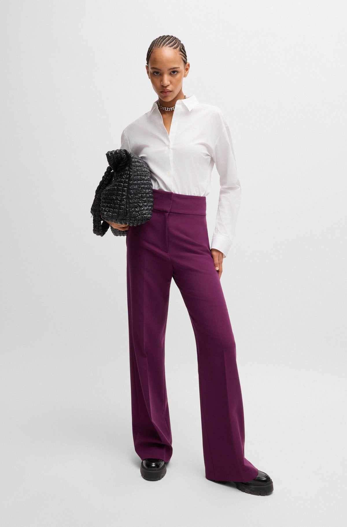 Un chemisier signature HUGO à la coupe féminine. Orné d'un logo superposé, cet essentiel de la garde-robe est confectionné en toile extensible. Ce produit est en partie fabriqué à partir de coton biologique. Nos normes biologiques n'autorisent pas l'utilisation d'engrais synthétiques, de pesticides ou de semences génétiquement modifiées.