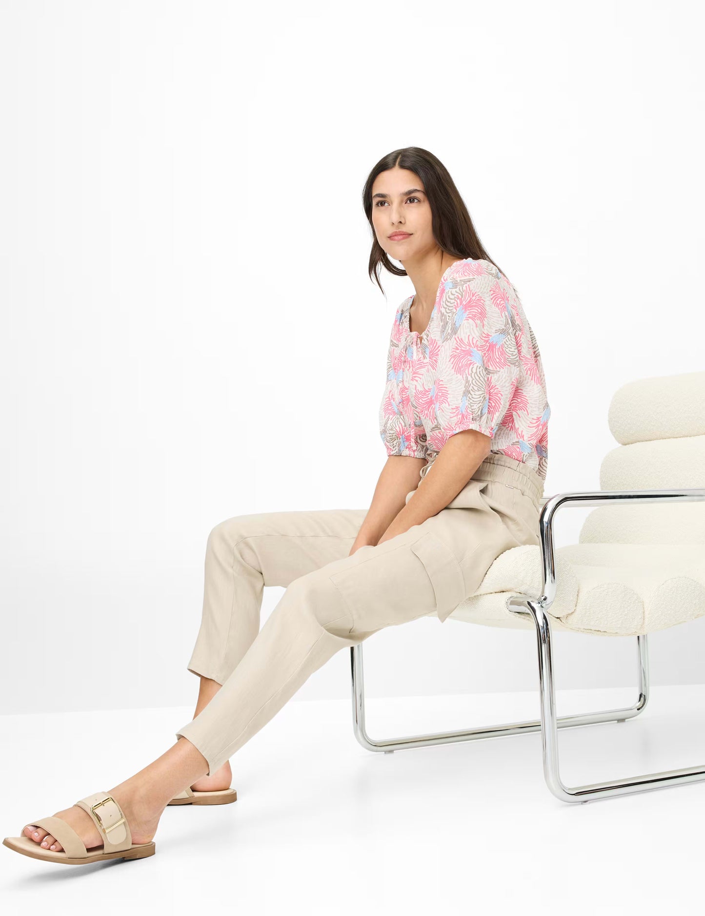 Pour les femmes, le modèle MONA S est une pièce tendance. Décontracté et moderne, ce pantalon cargo 7/8 vous permettra de créer un look tendance au quotidien avec n'importe quelle tenue. Ce pantalon femme à la coupe fuselée et taille haute présente une jambe fuselée pour un look élégant et décontracté. Sa taille élastiquée et son cordon de serrage design en font un modèle élégant et stylé. Ses poches cargo sportives lui confèrent une touche tendance supplémentaire. Ses propriétés rafraîchissantes et son séchage rapide font du lin un choix idéal pour les températures chaudes. Son effet froissé caractéristique, associé à une fibre naturelle légère et aérée, en fait un choix idéal pour l'été. Le mélange de lin, résistant et doux pour la peau, offre également un excellent confort à ce pantalon 7/8.
