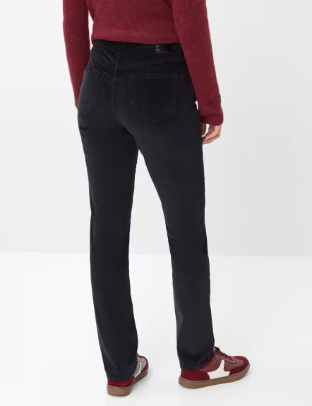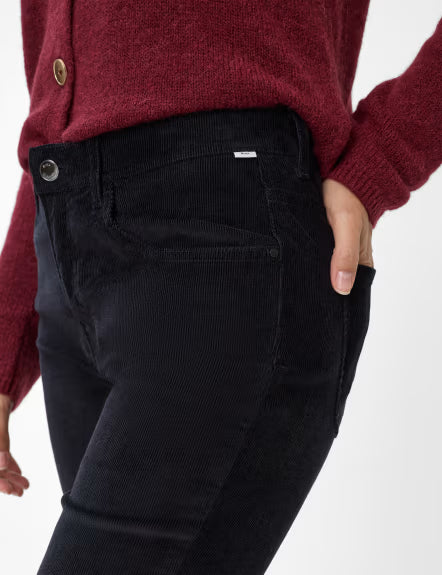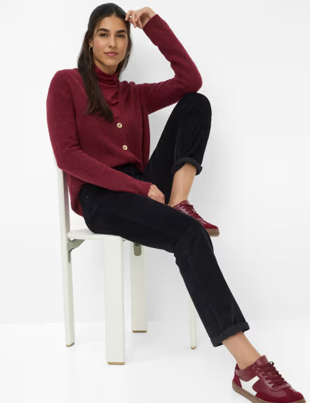 Avec ses couleurs harmonieuses, le pantalon en velours côtelé style MARY est un véritable incontournable des looks féminins d'automne. Ce pantalon cinq poches classique séduit par sa silhouette droite et sa taille haute classique, une coupe intemporelle et confortable. De discrètes poches arrière, une petite poche à monnaie et des poches latérales pratiques complètent son design typique. Visuellement, ce pantalon cinq poches se distingue par son velours côtelé fin et sa structure côtelée caractéristique. La matière, composée d'un mélange de coton doux, gagne en souplesse grâce à l'élasthanne, permettant au pantalon d'épouser chaque mouvement sans perdre sa forme. La qualité spéciale du velours côtelé brille par ses couleurs vives et, grâce à sa vaste palette de couleurs, offre de nombreuses possibilités de combinaisons, idéales pour des tenues élégantes au quotidien.