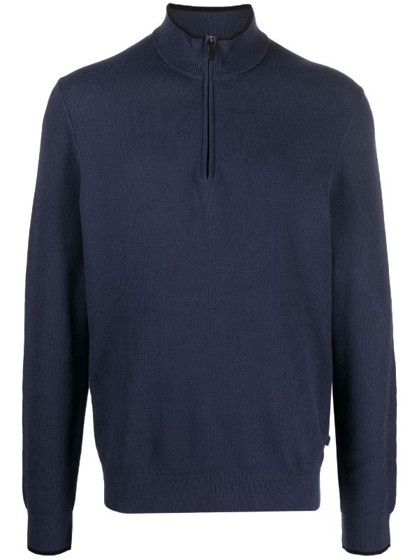 Indispensable pour les journées décontractées au bureau et bien plus encore, ce pull à demi-zip est tricoté en coton texturé doux sur la peau. Portez-le avec un pantalon de tailleur en semaine, et sur un t-shirt et un jean le week-end.