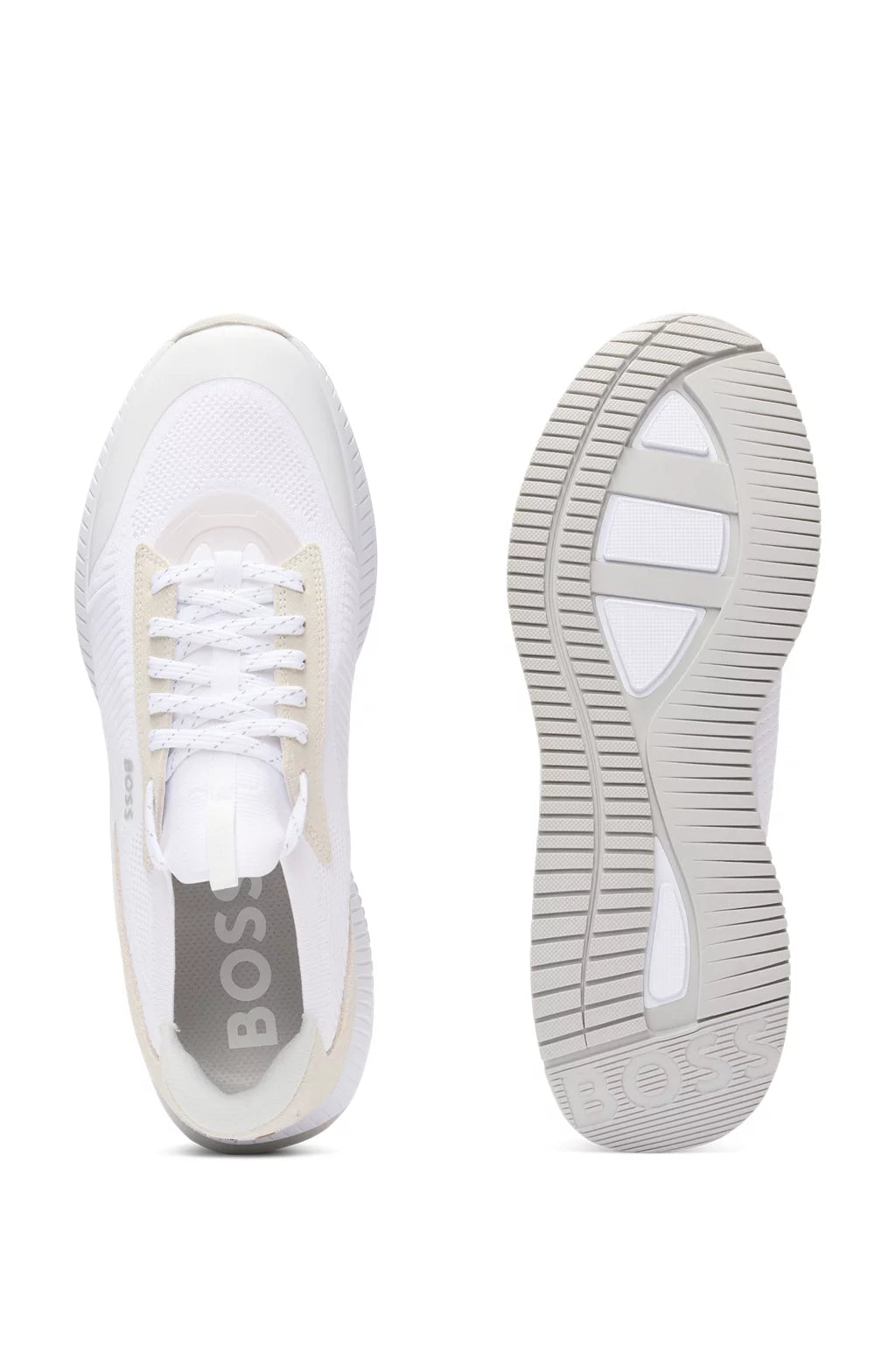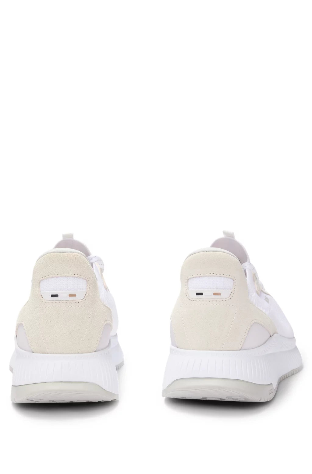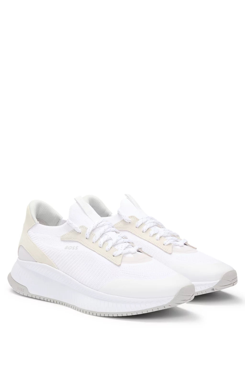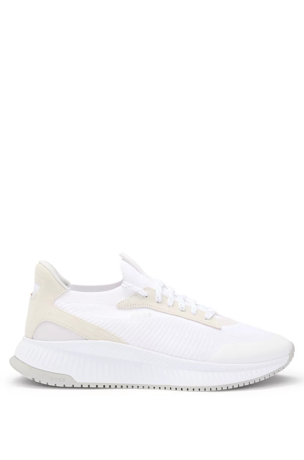 Prix régulier $198.40 CADConfectionnées dans une combinaison de matériaux, y compris des bordures en cuir, ces baskets BOSS Menswear de style running présentent un profil distinctif. Semelle extérieure striée légère. Dessus tricoté pour un confort et un ajustement améliorés.