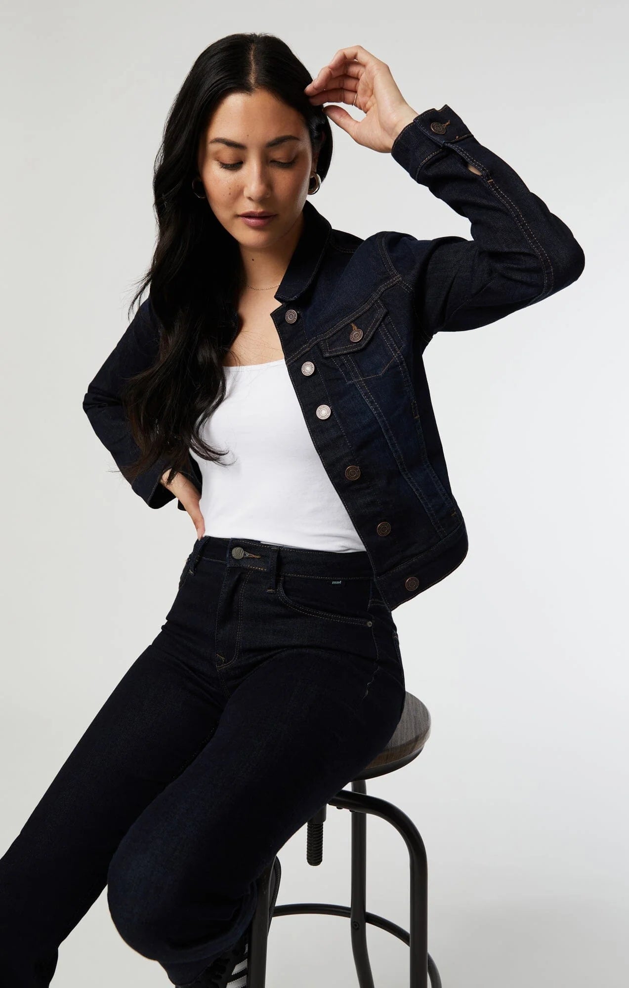 Avec sa coupe ajustée et féminine, cette veste en jean classique présente un drapé texturé et léger, à l'allure vintage, ce qui en fait la pièce idéale à superposer en toute saison. Son délavage foncé classique et son tissu extensible la rendent facile à porter et indéformable. Un indispensable.