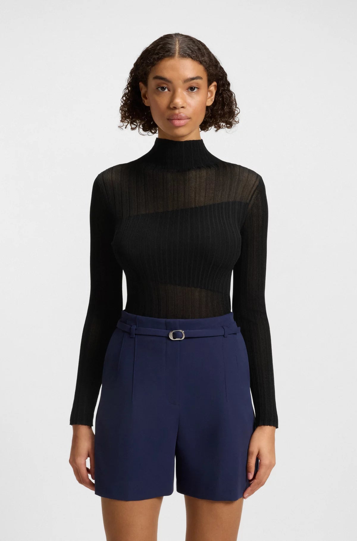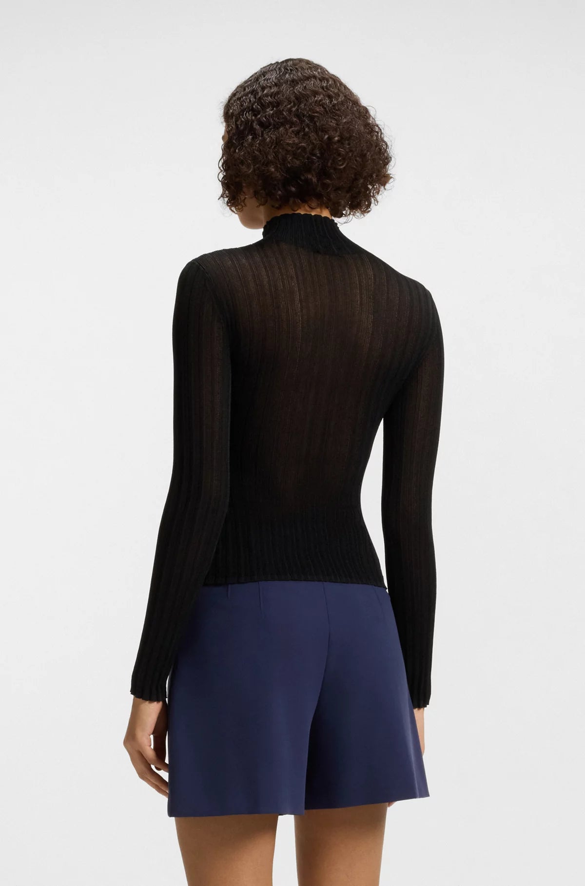 Avec sa coupe ajustée et ses empiècements transparents, ce pull HUGO Femme est une pièce contemporaine. Tricoté en fil extensible avec un motif côtelé irrégulier. Ce produit contient au moins 60 % de matières premières de meilleure qualité. Ce produit est partiellement fabriqué à partir de fibres de cellulose recyclées.