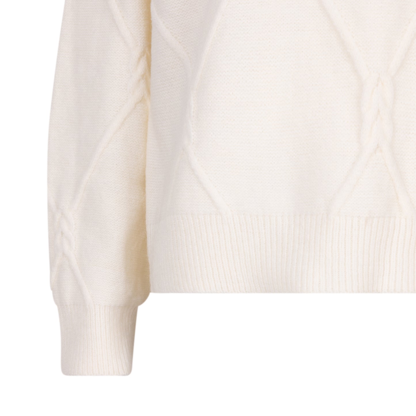 Pull confortable à manches longues et col rond. Il présente un motif torsadé 3D.