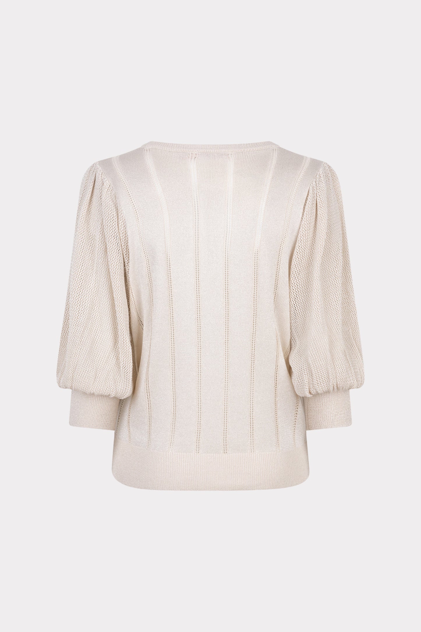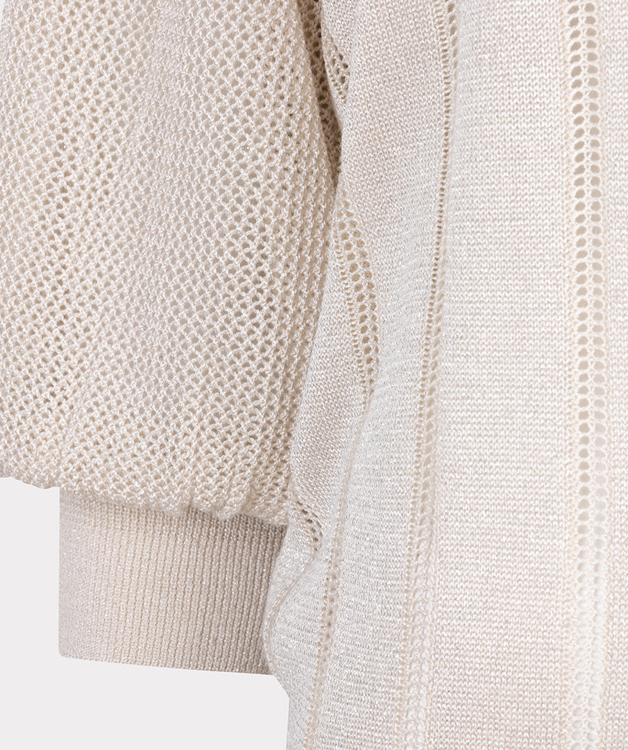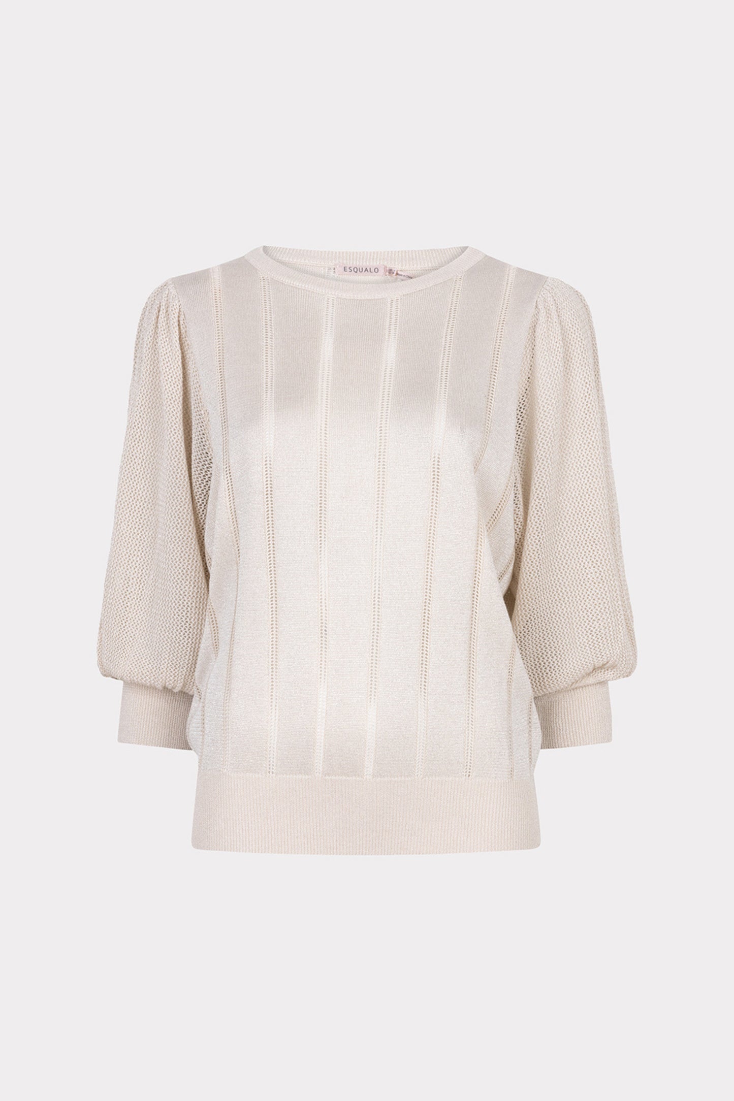 Ce pull raffiné, subtilement brillant en lurex et doté d'élégantes manches bouffantes, est un véritable accroche-regard. Sa texture aérienne et sa douce nuance gris clair apportent une touche féminine à toutes vos tenues. Idéal pour les occasions décontractées comme chics.