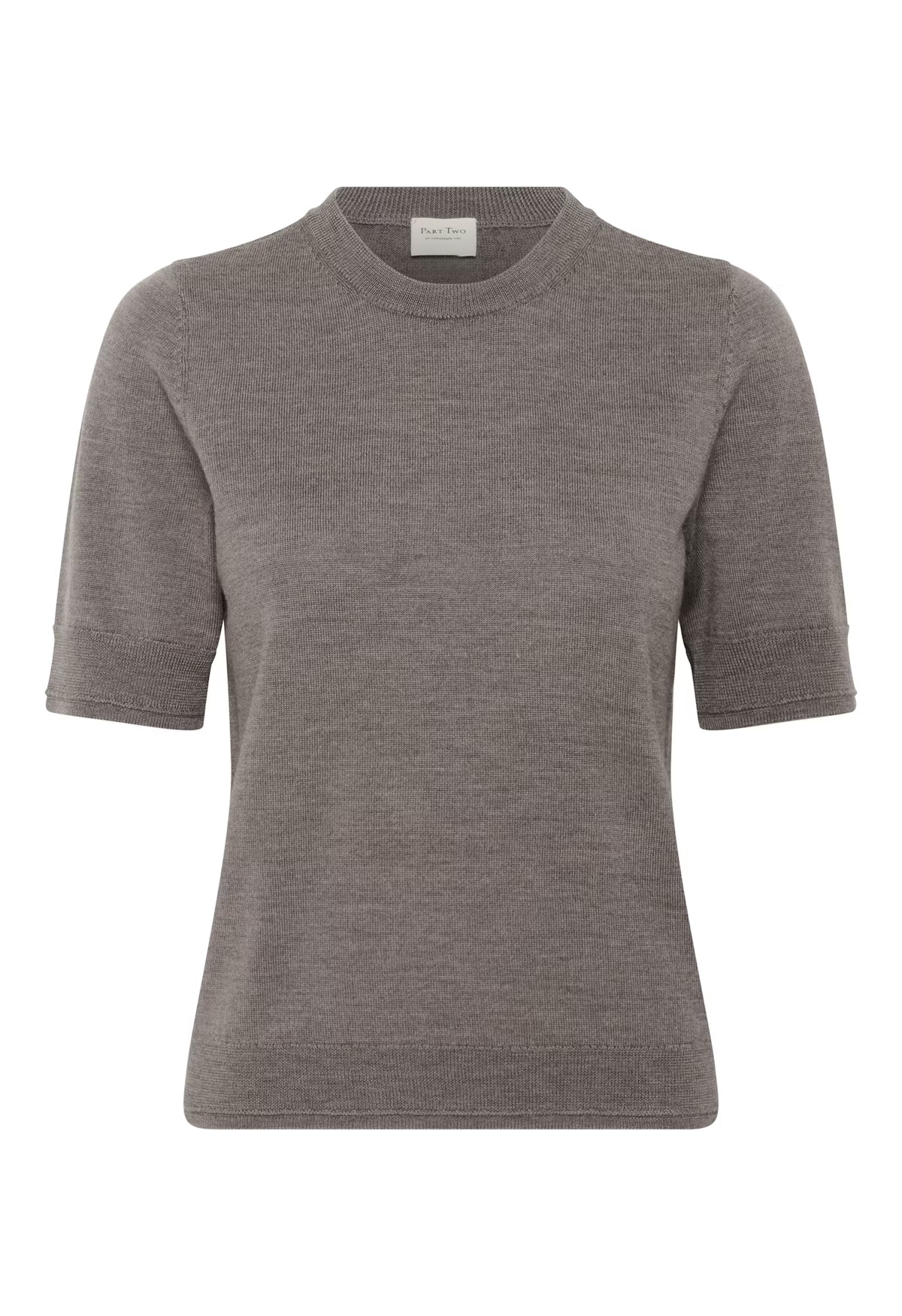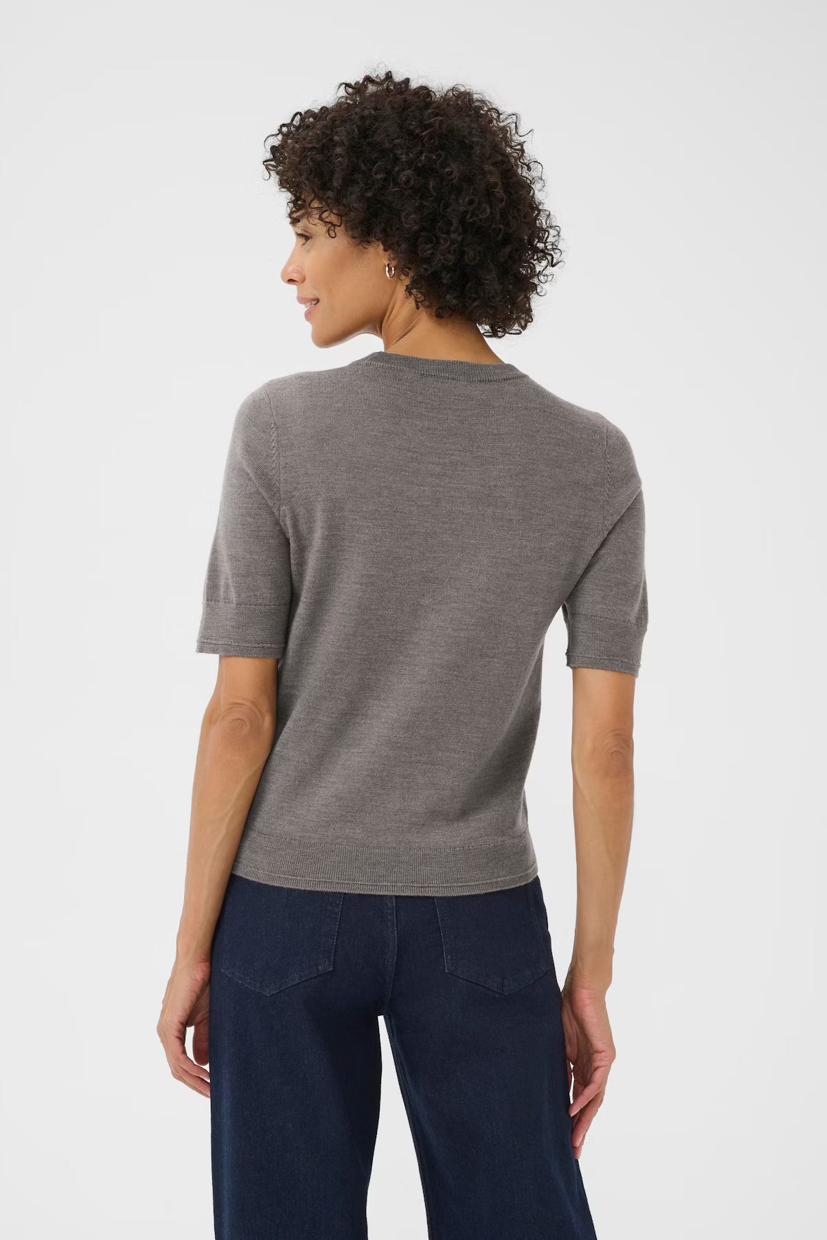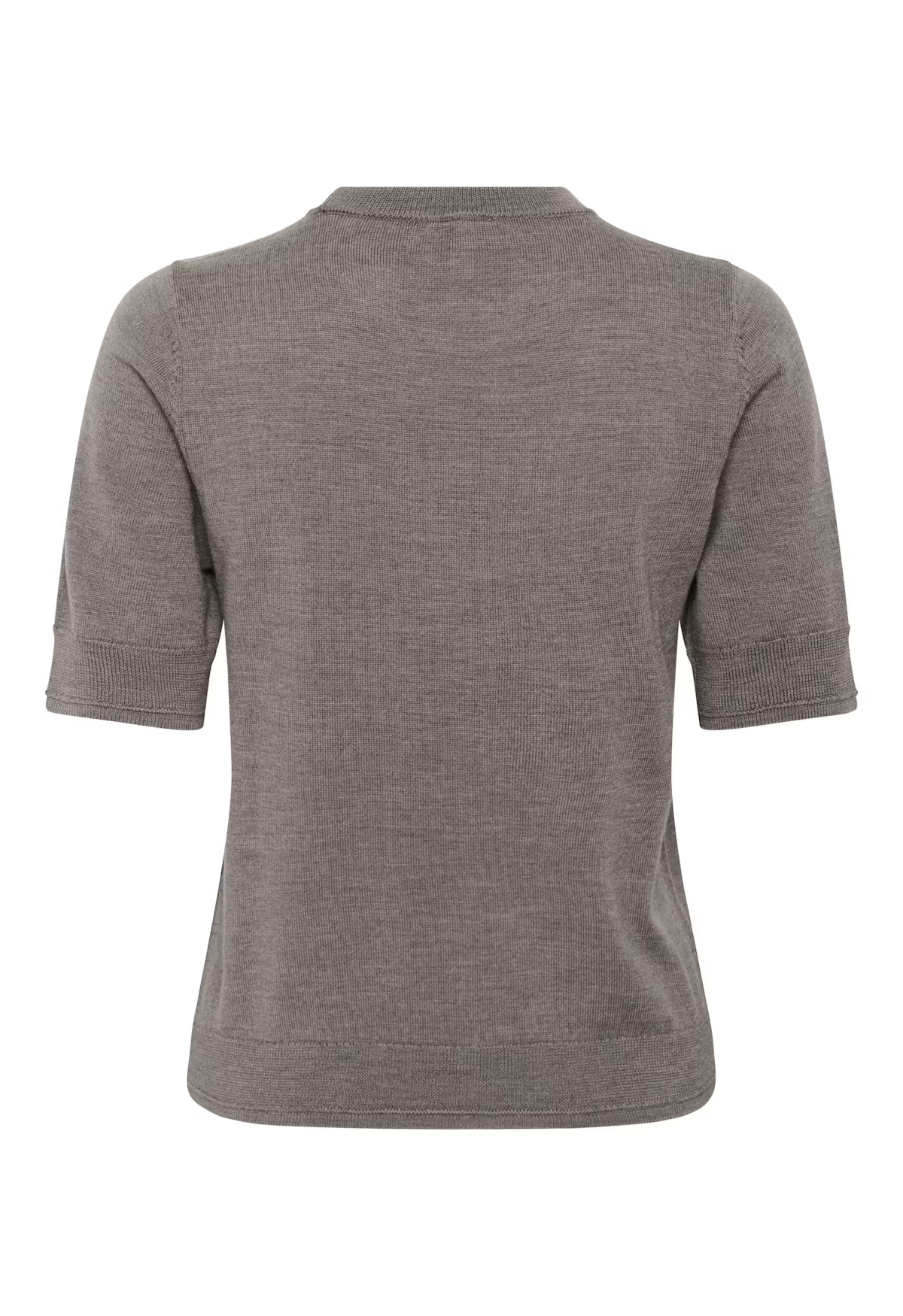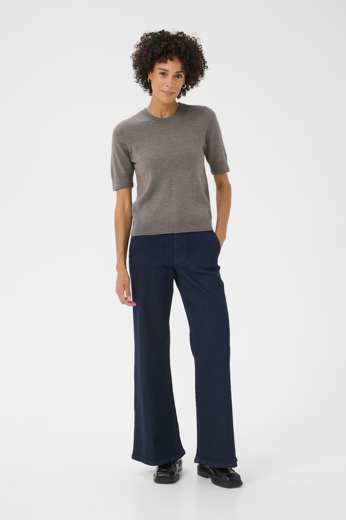 Le mannequin mesure 1,77 m et porte une taille M. Ce haut en maille à manches courtes en fine laine mérinos présente une encolure ras du cou et une coupe droite intemporelle. Les bords-côtes aux manches et à l'ourlet ajoutent une touche classique. Portez-le seul ou sous un blazer ; il est idéal pour le travail comme pour les loisirs.