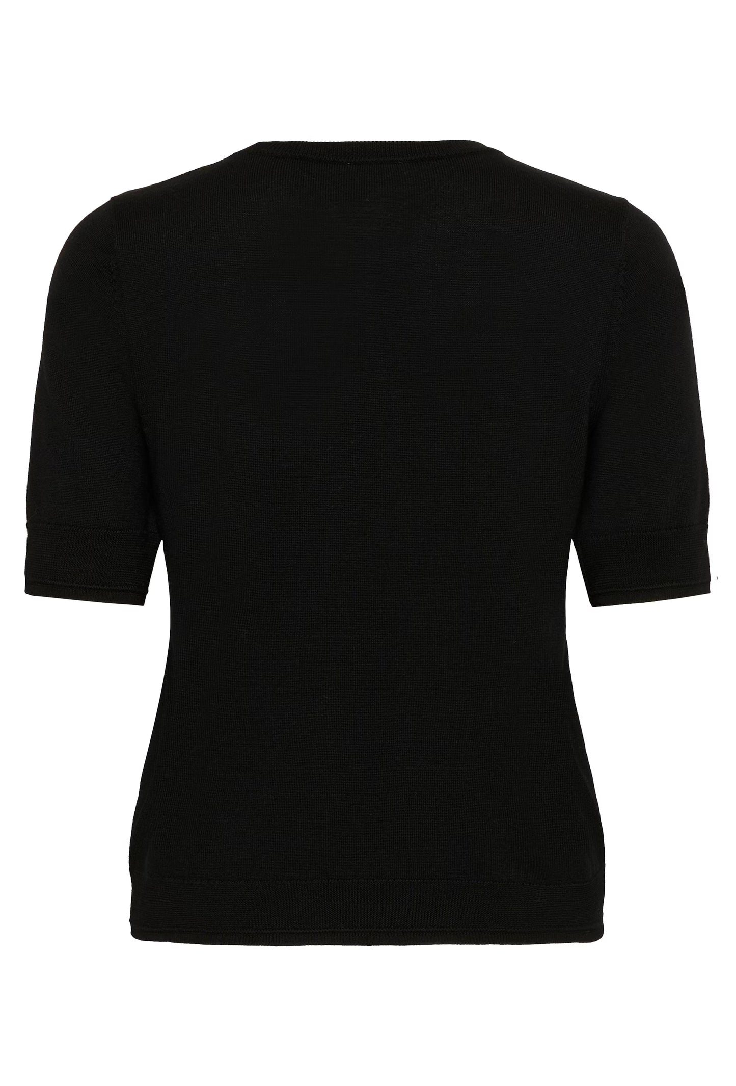 Le mannequin mesure 1,78 m et porte une taille M. Ce pull à manches courtes est 100 % laine et présente une encolure ronde classique avec des finitions côtelées soignées. Sa silhouette épurée en fait un incontournable de votre garde-robe ; parfait seul ou sous un blazer.