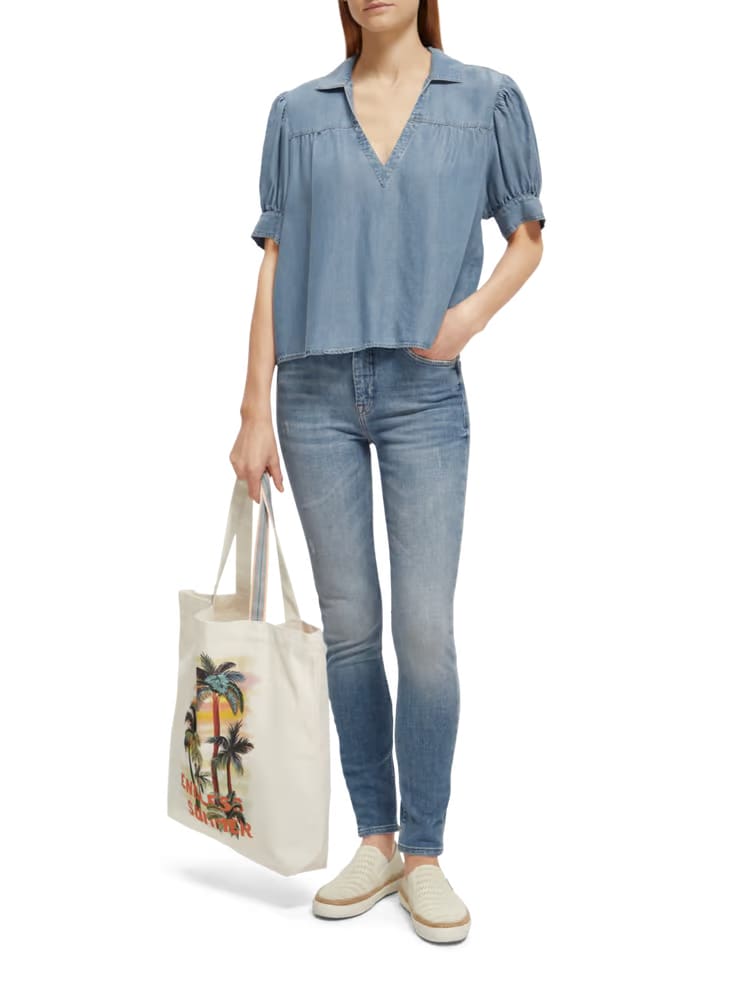 Prix régulier $94.00 CADÉlégant et confortable, ce chemisier classique est l'un de nos basiques préférés. Dotée d'un col en V et de manches légèrement bouffantes, cette blouse est facilement habillée ou décontractée pour toutes les occasions avec une sensation simple et décontractée. Ce vêtement contient des fibres de lyocell de marque TENCEL™. Fabriquées par Lenzing AG, ces fibres de marque sont extraites de pâte de bois cultivée dans des forêts gérées de manière responsable. Le matériau est produit dans un processus de production en boucle fermée dans lequel 99 % du solvant naturel est récupéré et réutilisé et toute l'eau est recyclée. TENCEL™ est une marque déposée de Lenzing AG. Haut femmeChemisierÀ manches courtesCol en VManches bouffantes Charte de grandeur (SCOT-172201-0089)