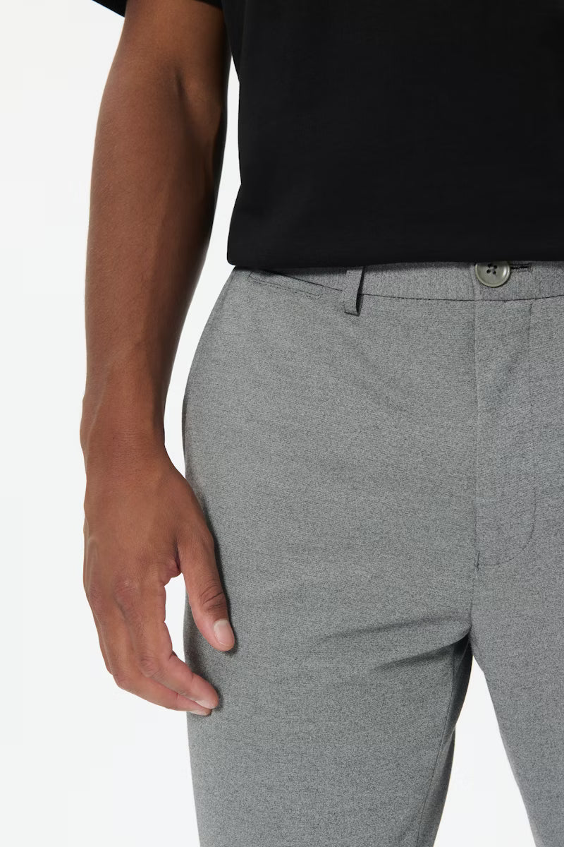 Pantalon ajusté à coupe ajustée, doté de poches latérales, d'une taille minimaliste avec passants et d'une silhouette épurée. Sa texture subtile lui confère une allure moderne.