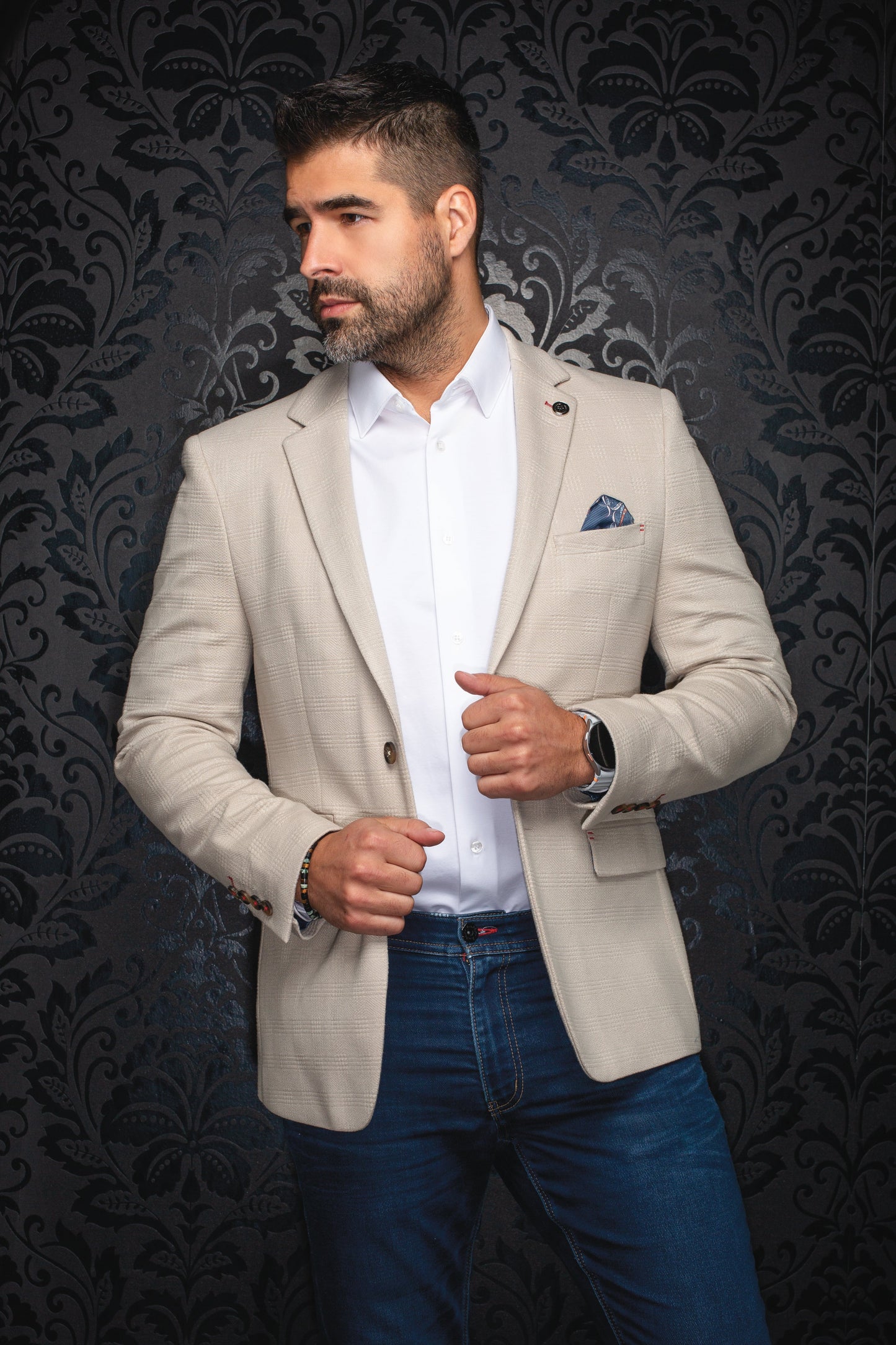Veston fashion et extensible pour homme. Distinguez-vous avec nos détails sophistiqués et doublure à motifs. Confortable avec un mélange de tissu haut de gamme offrant une confiance et une liberté de mouvement.