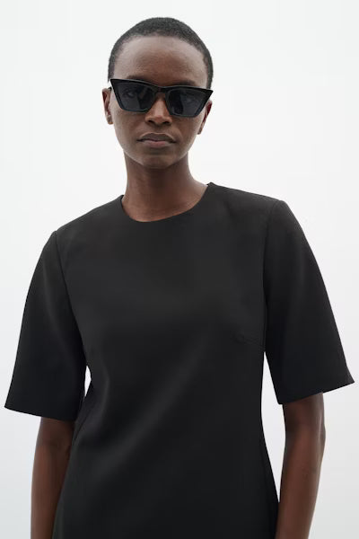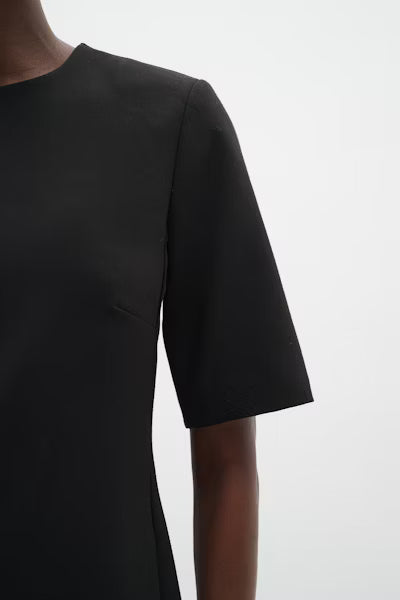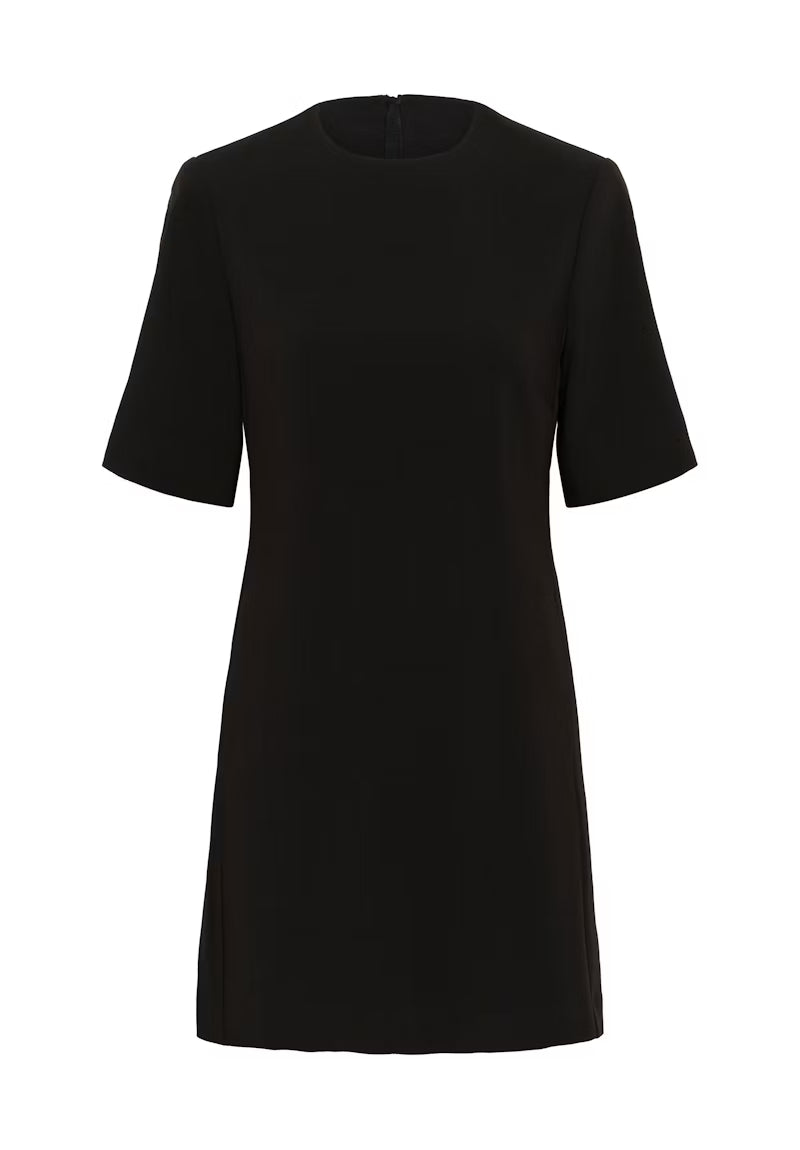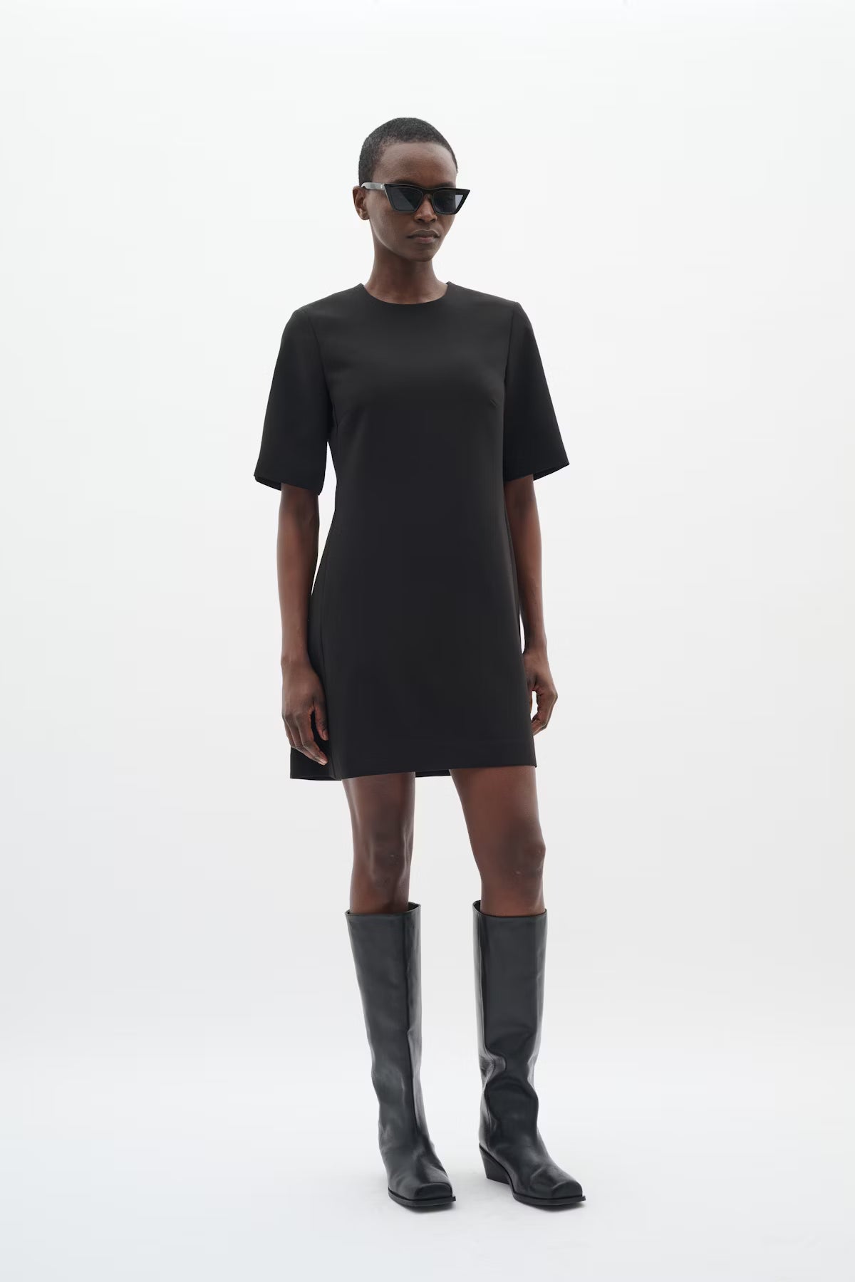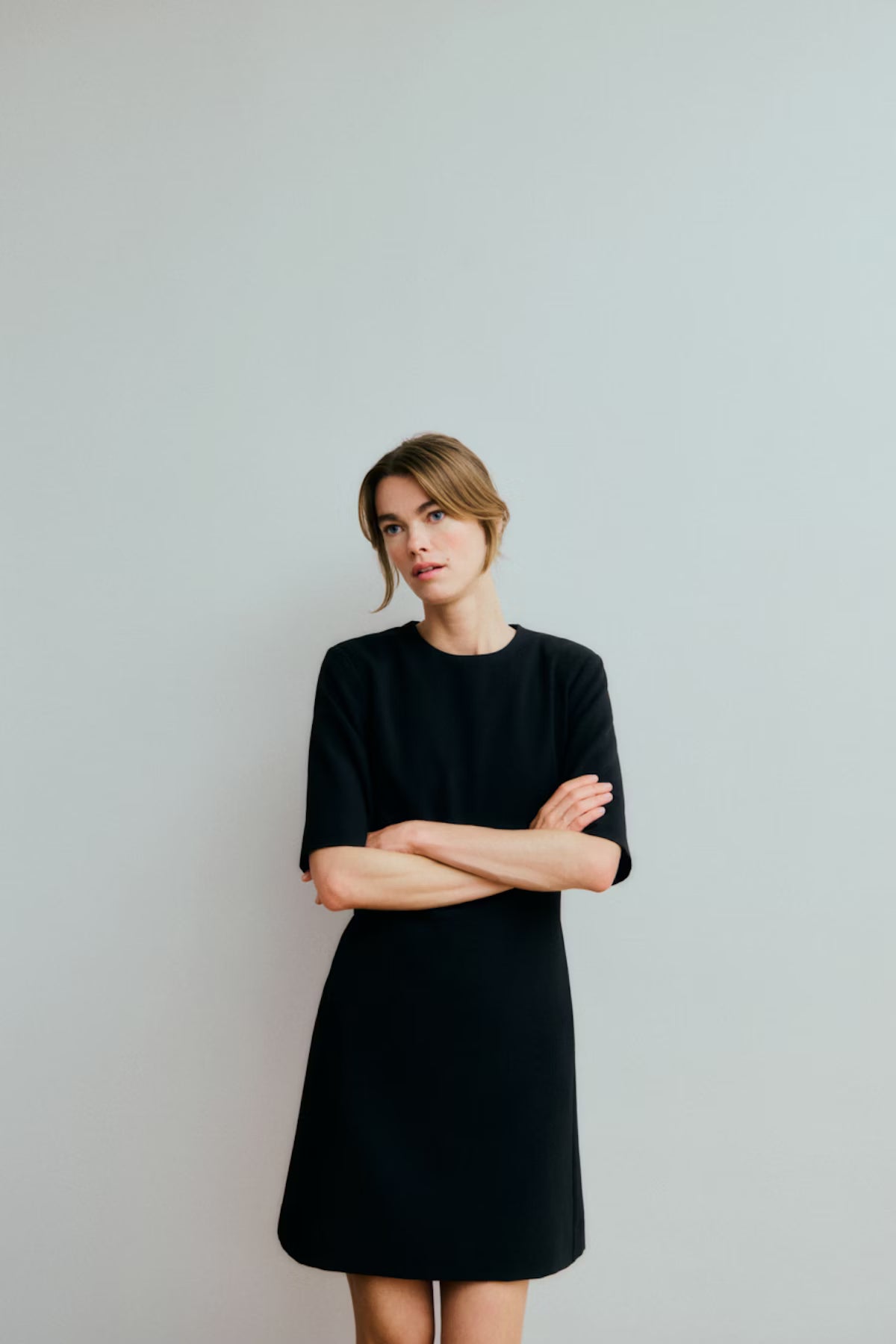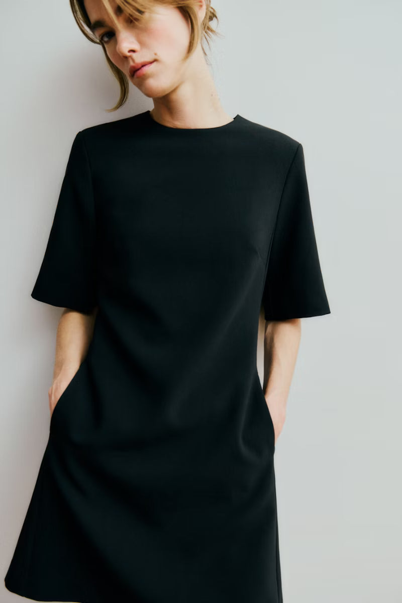 Cette mini-robe à manches courtes offre une coupe droite et décontractée, un col ras du cou et des lignes épurées. Conçue pour le confort et la polyvalence, cette mini-robe intemporelle s'adapte parfaitement aux occasions et aux saisons.