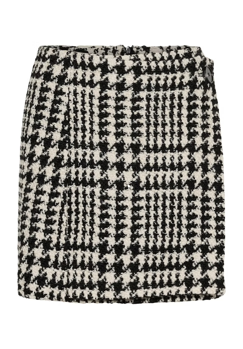 Cette mini-jupe en tweed pour femme présente une coupe droite et une taille haute, offrant un style intemporel et une silhouette flatteuse. Confortable au quotidien, elle est idéale au travail comme pour les occasions décontractées.