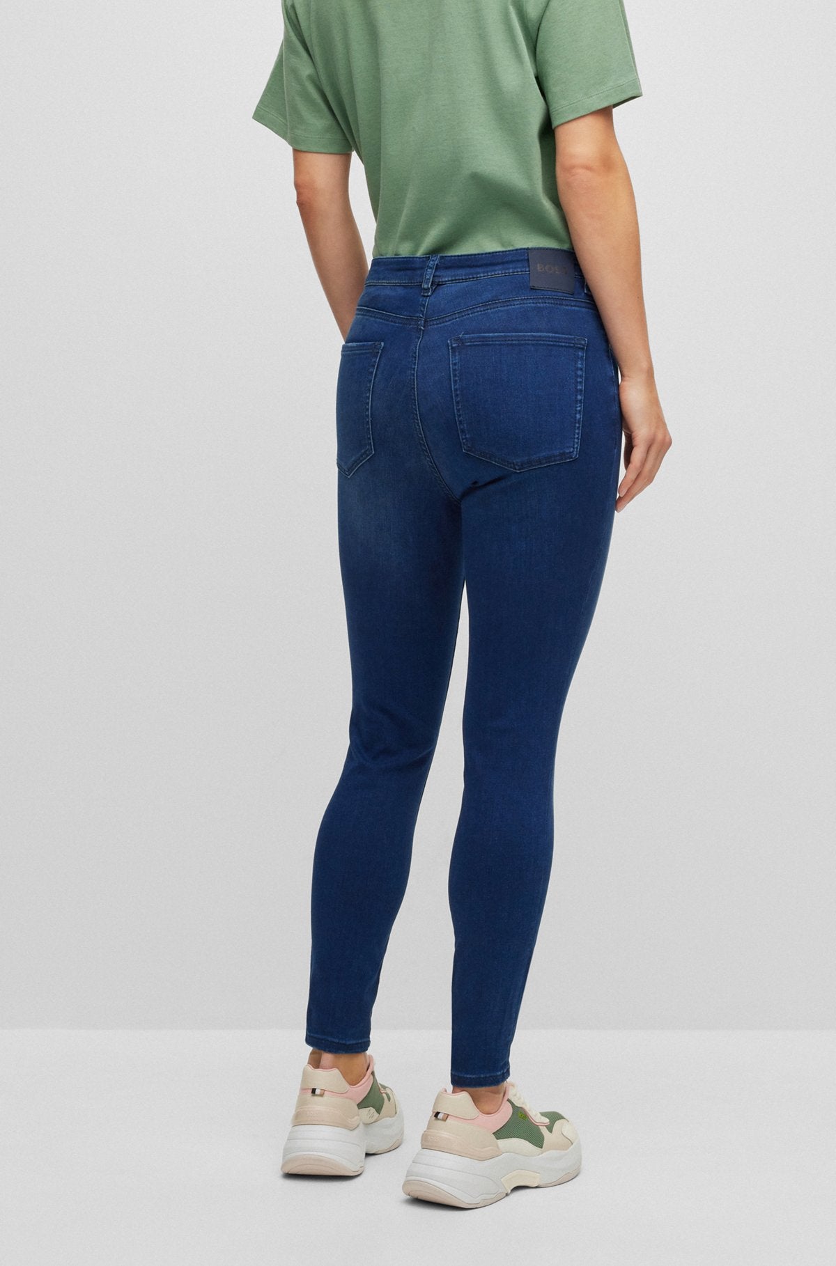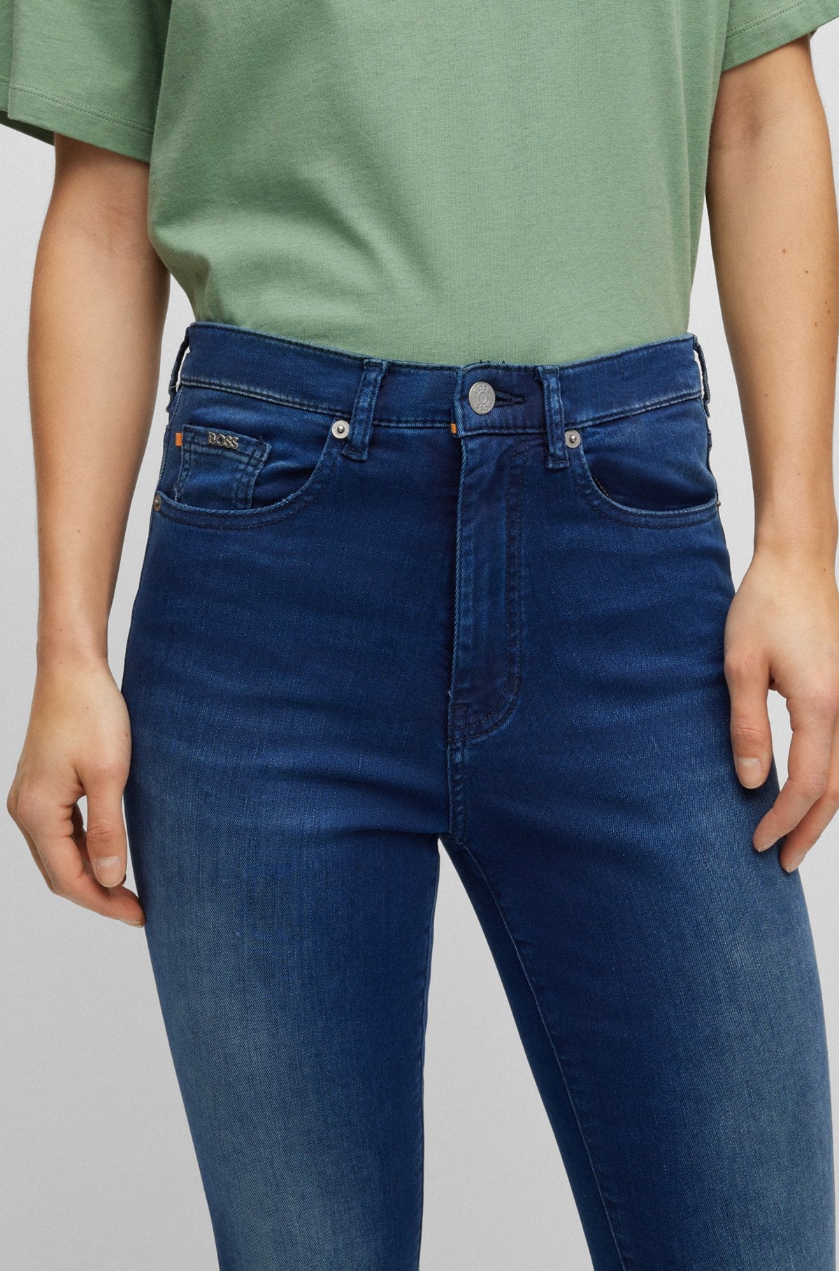 Prix régulier $84.00 CADJean taille haute raccourci en denim bleu léger Power Stretch par BOSS Femme.