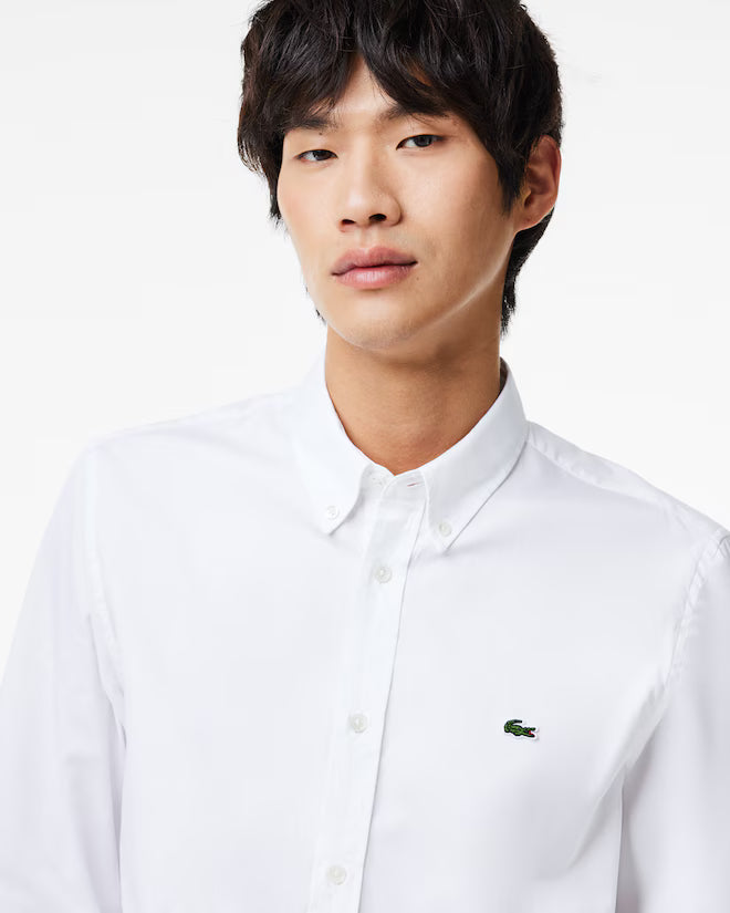 Cette chemise Lacoste est une véritable leçon d'élégance et un véritable incontournable du vestiaire masculin. Ses lignes pures et épurées sont réalisées dans un coton pinpoint de qualité supérieure, au tissage luxueux et léger. Sa coupe droite et ses deux plis lui confèrent une allure unique.