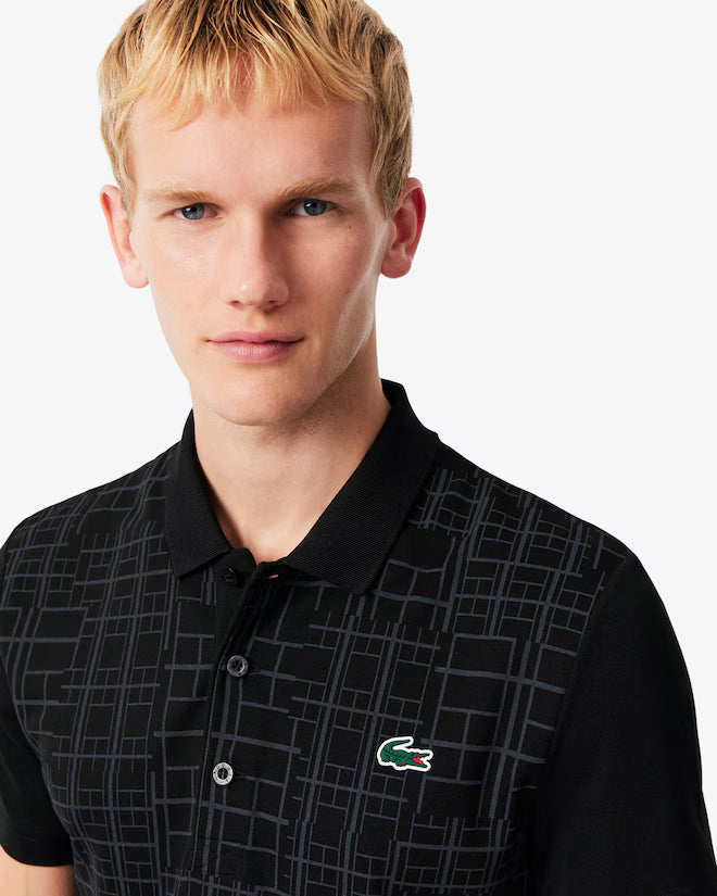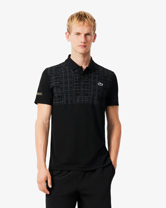 Ce polo, testé et approuvé par la superstar Novak Djokovic, est une véritable leçon de savoir-faire Lacoste en matière de tennis. Confectionné dans notre maille piquée emblématique, avec la technologie Ultra-Dry pour une sensation de fraîcheur optimale, il est doté d'un grand imprimé central, inspiré des formes des raquettes de tennis, pour une touche graphique et audacieuse.