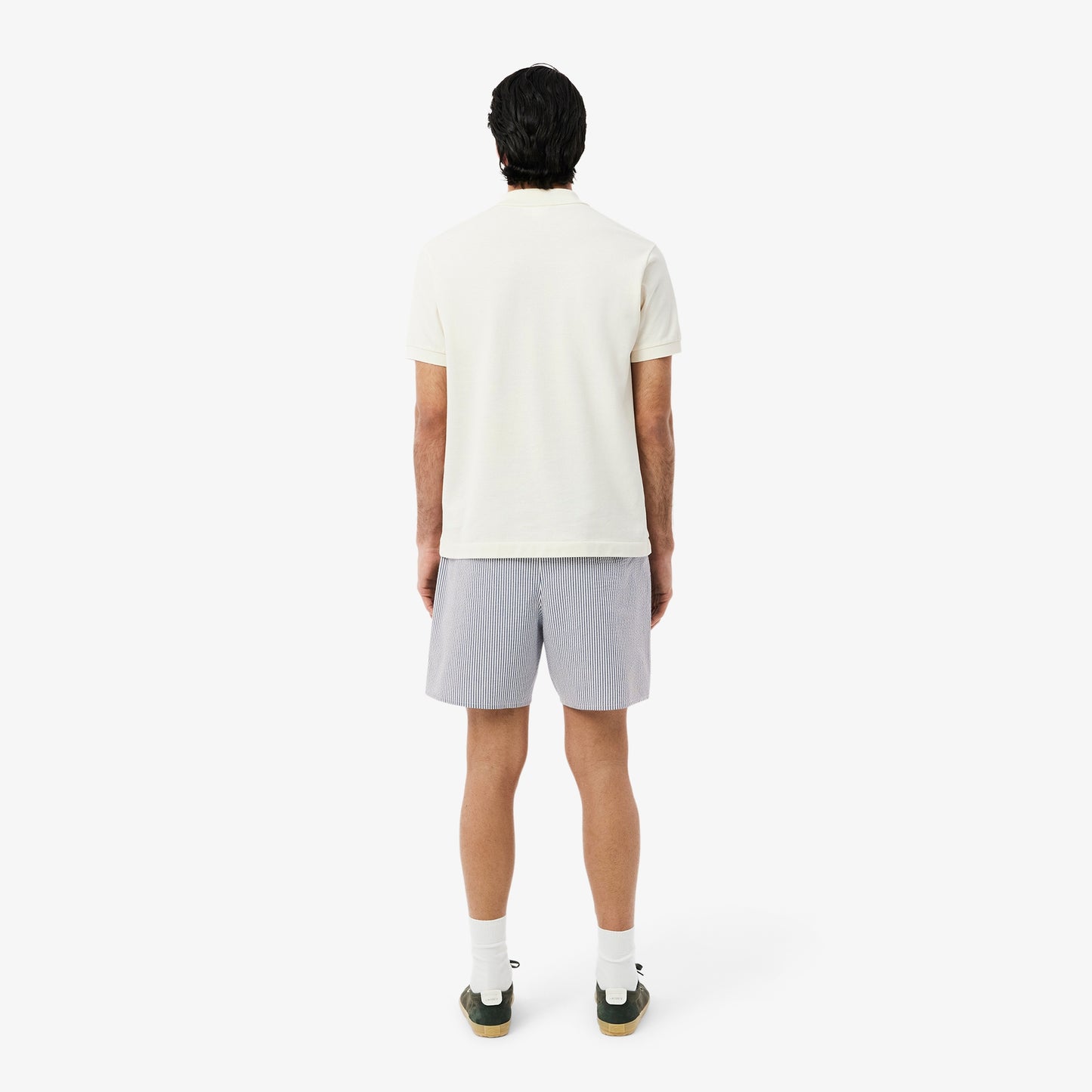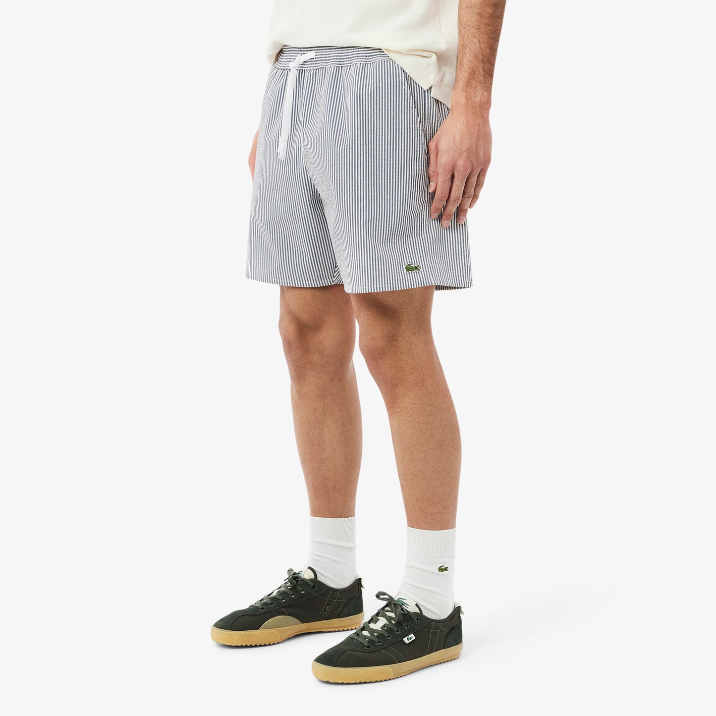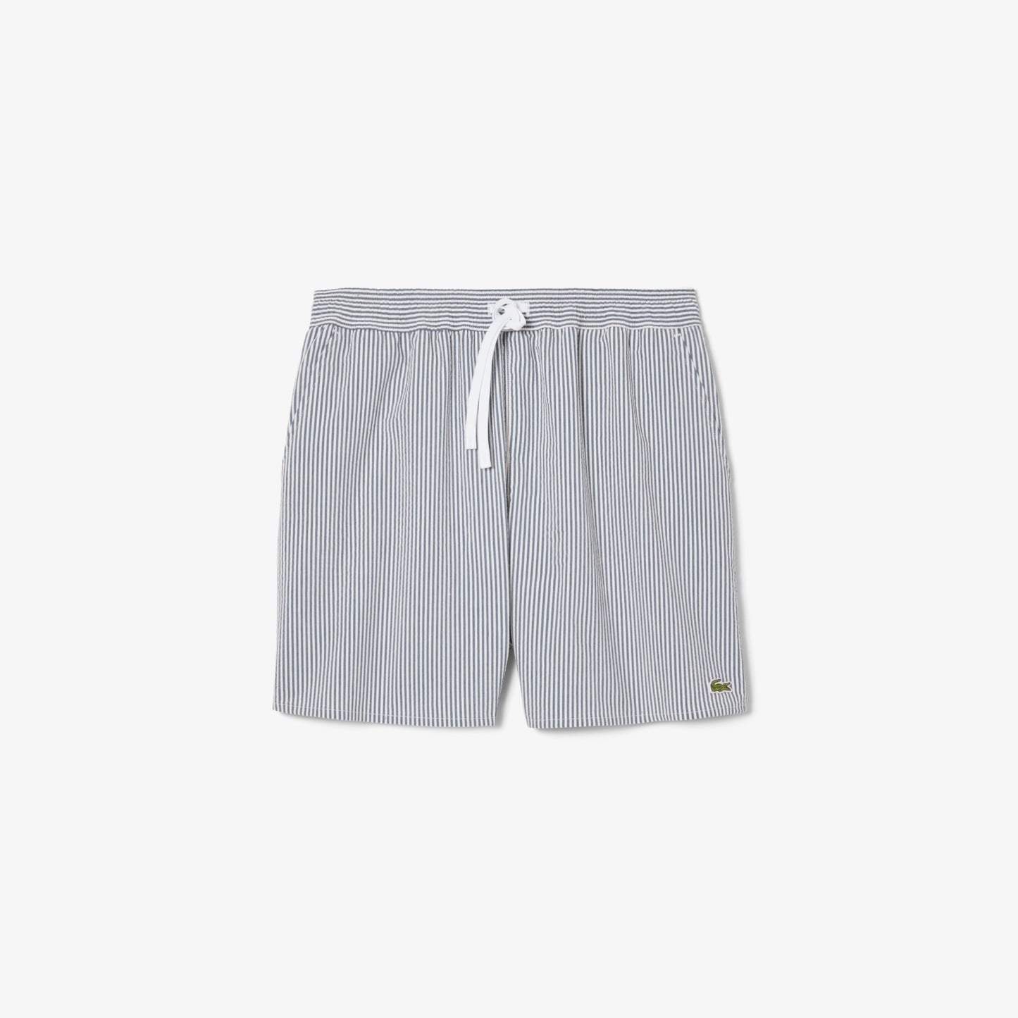Ce short de bain mi-long est une leçon d'élégance et de savoir-faire Lacoste. Fabriqué à partir d'un tissu seersucker doux et texturé avec doublure en maille intégrée pour une liberté de mouvement et une finition à séchage rapide, avec des rayures étroites et un crocodile signature brodé pour une sensation chic et décontractée. Vendu avec un sac de natation.