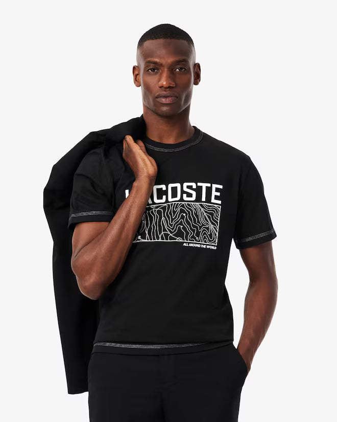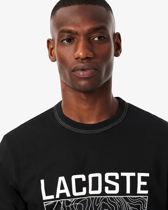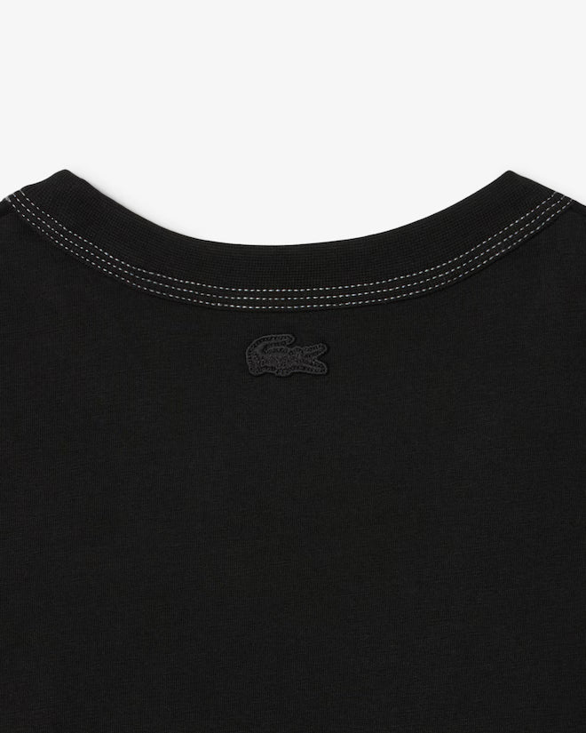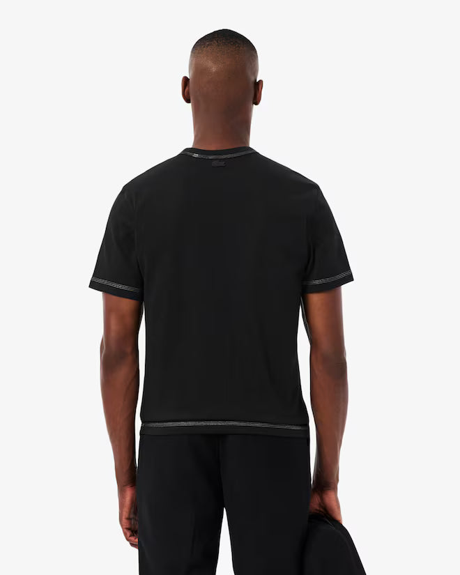 Ce t-shirt en jersey de coton mi-épais est conçu pour le confort et la liberté de mouvement. Il arbore une triple surpiqûre au col et aux manches pour une touche sophistiquée, ainsi qu'un crocodile signature brodé au dos.