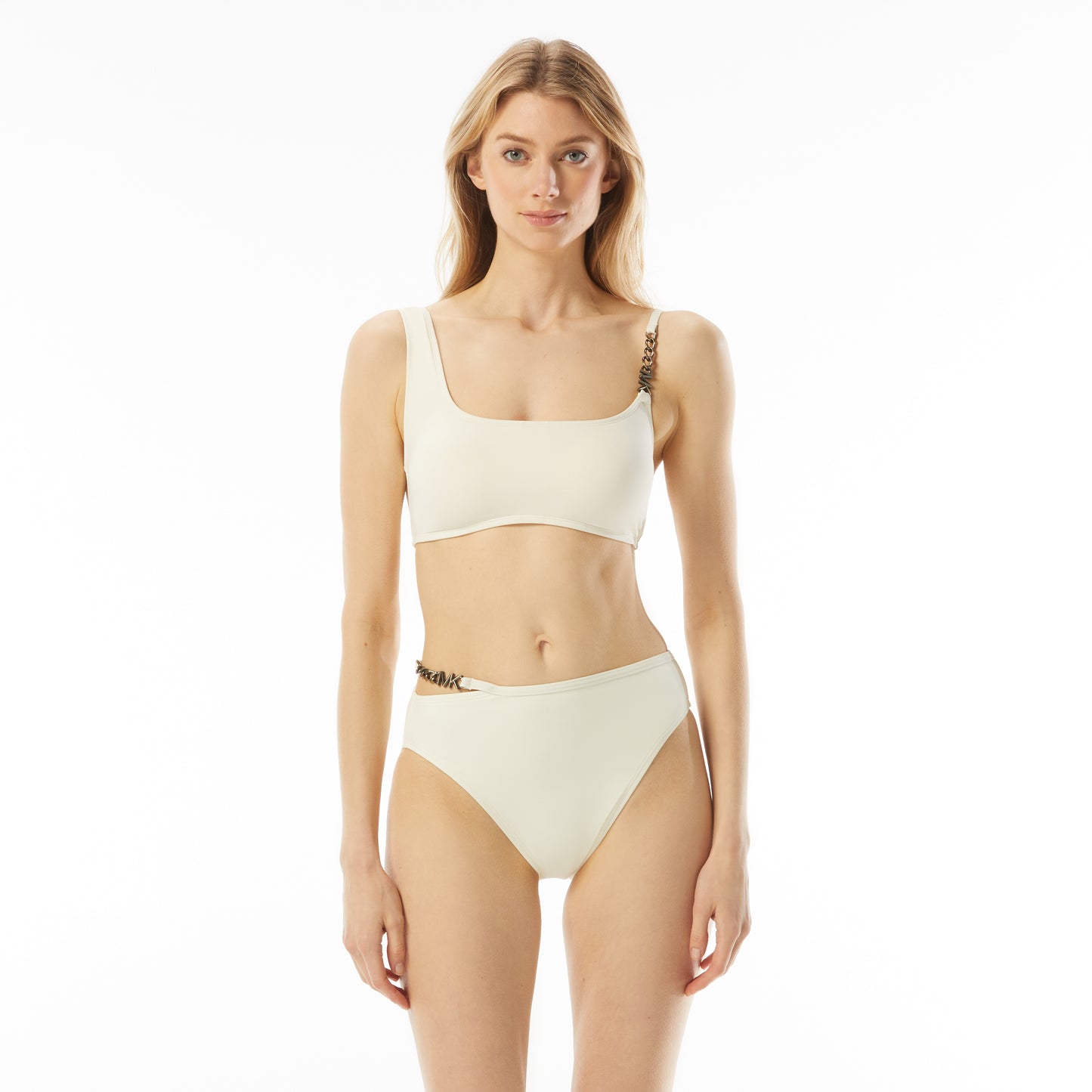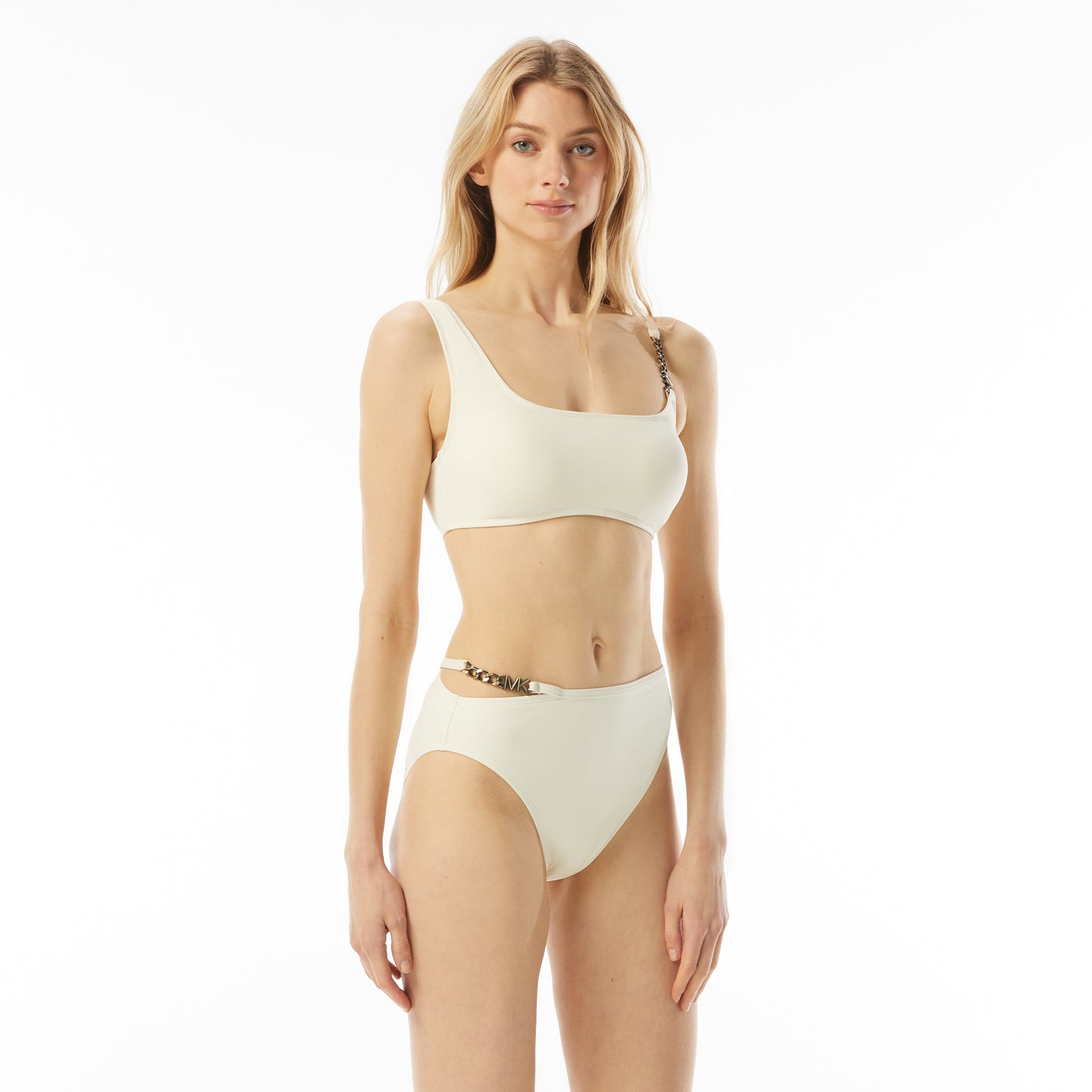 Prix régulier $60.00 CADUn haut de bikini classique obtient un détail à la mode avec le haut de bikini MICHAEL Michael Kors Logo Chain. Doté d'une chaîne à logo sur la sangle dans des couleurs unies audacieuses, c'est une option de maillot de bain intemporelle.