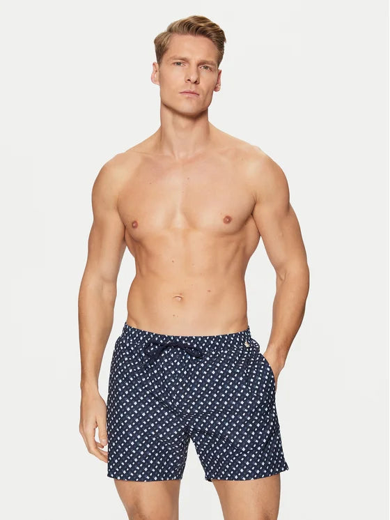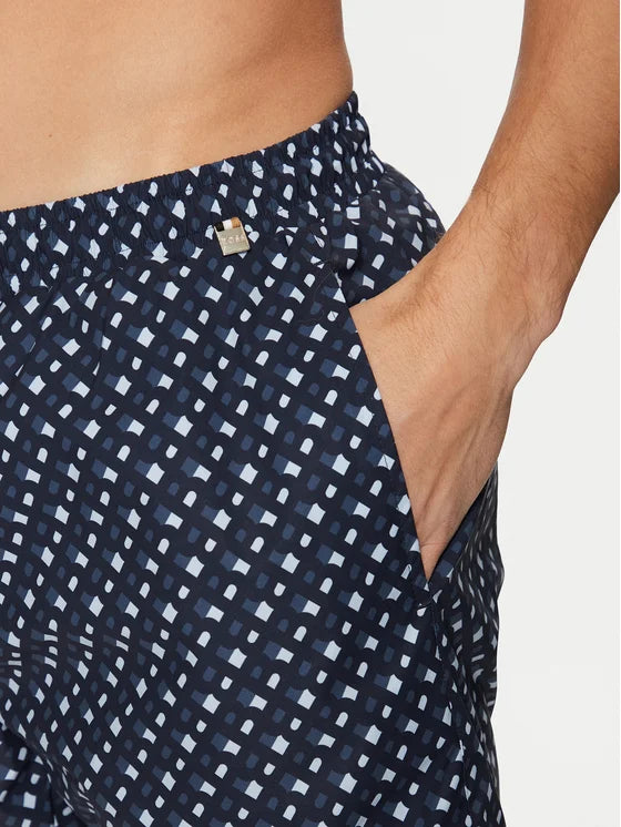 Short de bain BOSS à bordures emblématiques, confectionné en tissu à séchage rapide entièrement doublé et entièrement imprimé de monogrammes pour un look distinctif. Ce produit est en partie fabriqué à partir de polyester recyclé.