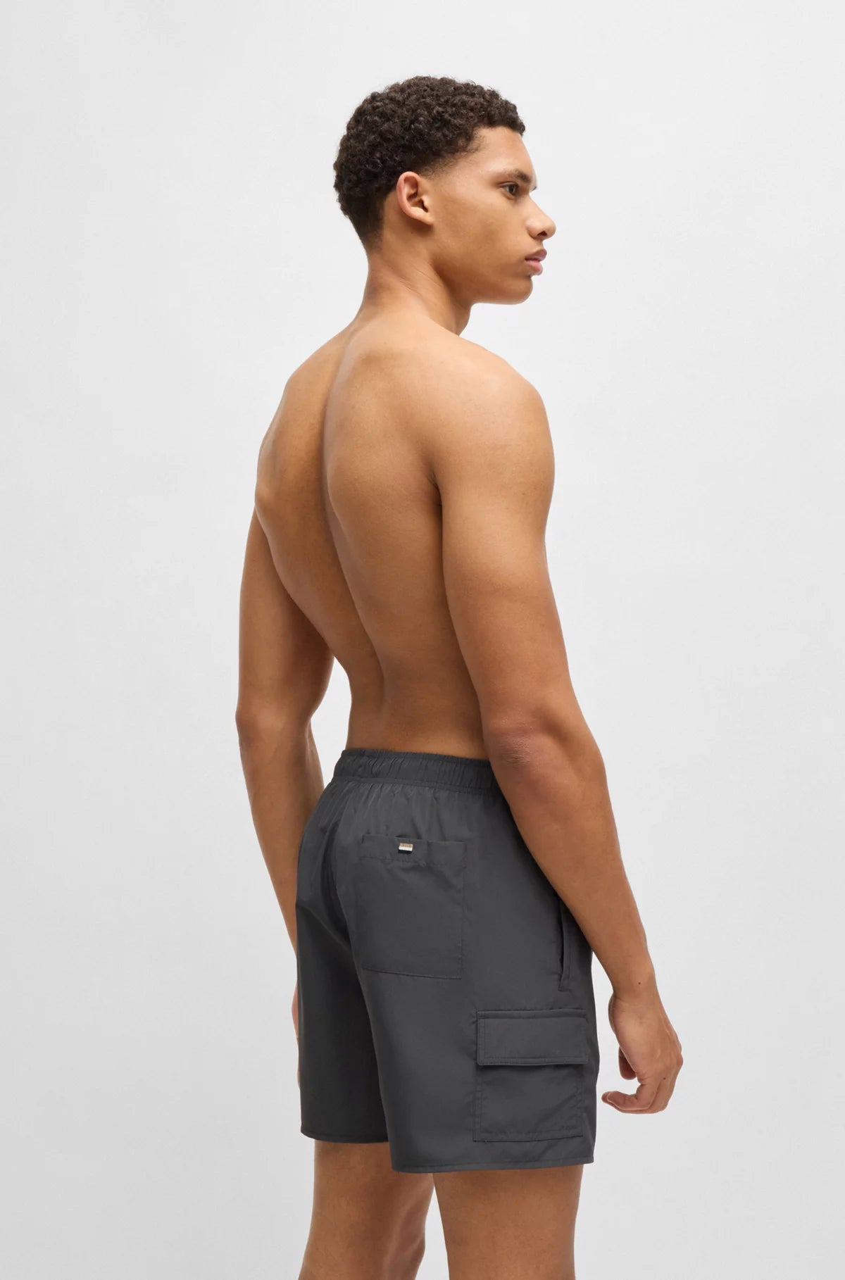 Préparez-vous pour la plage avec ce short de bain BOSS Menswear, doté d'une poche cargo pour vos essentiels. Confectionné dans une matière à séchage rapide. Badge logo en caoutchouc ton sur ton. Ce produit contient au moins 60 % de matières premières de meilleure qualité. Ce produit est en partie créé à partir de polyester recyclé. Chez HUGO BOSS, nous préférons le polyester recyclé issu de déchets textiles pré et post-consommation et faisons de notre mieux pour éliminer progressivement le polyester des bouteilles en PET.