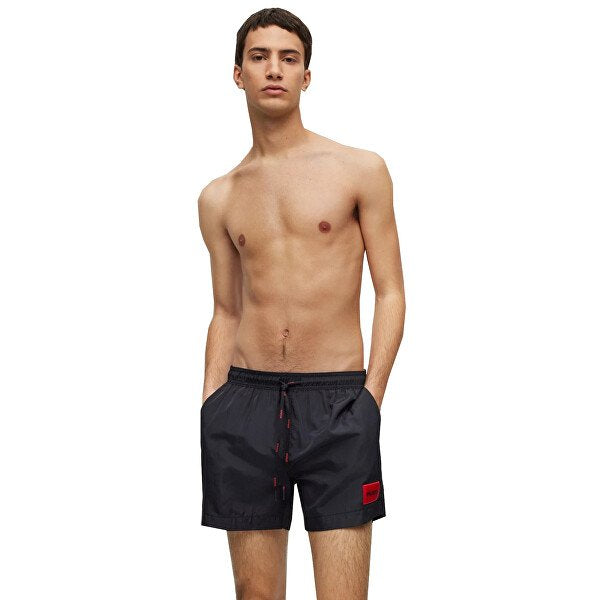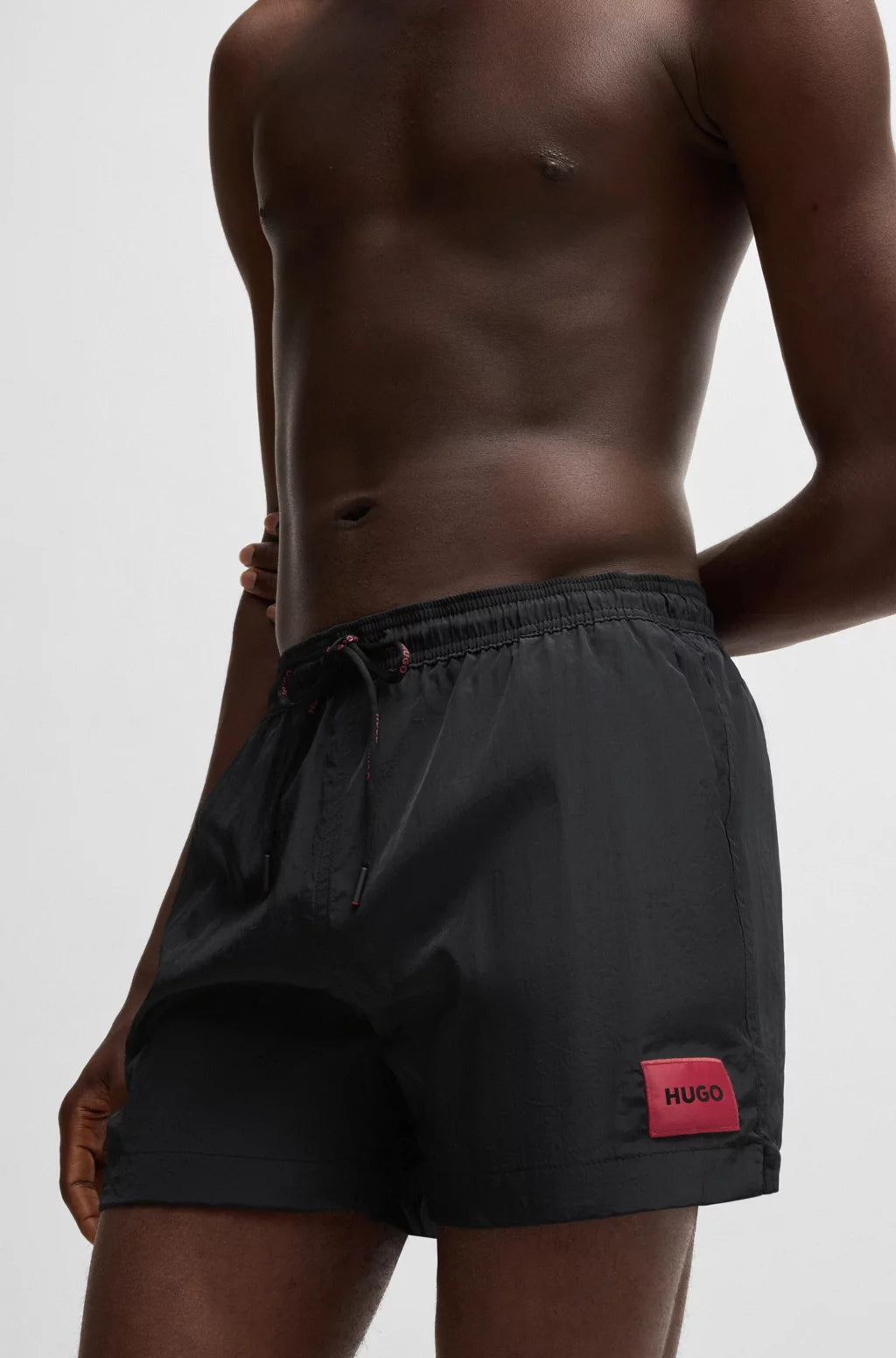 Short de bain entièrement doublé HUGO en matière à séchage rapide avec étiquette logo rouge et cordon de serrage à la taille.