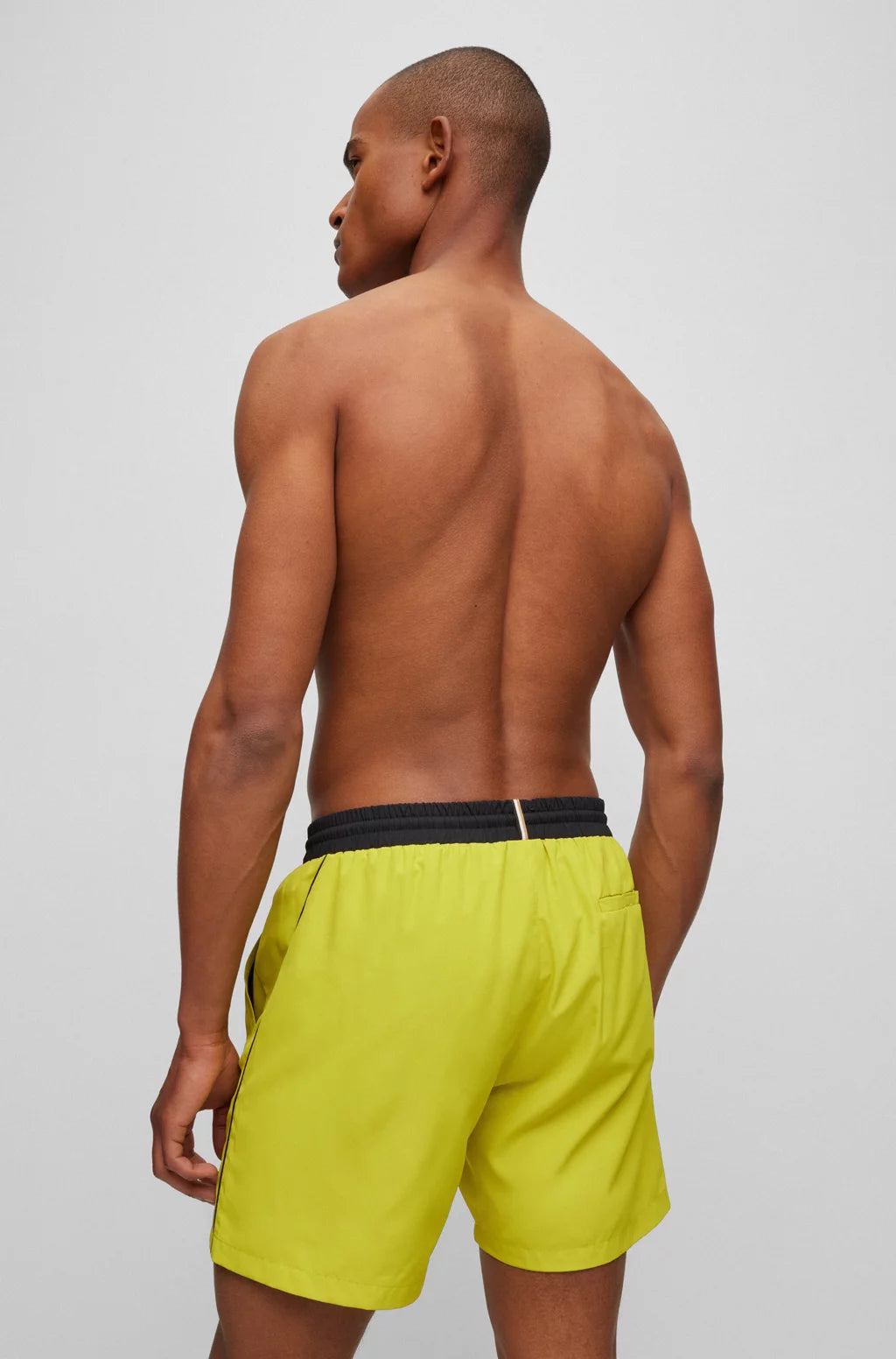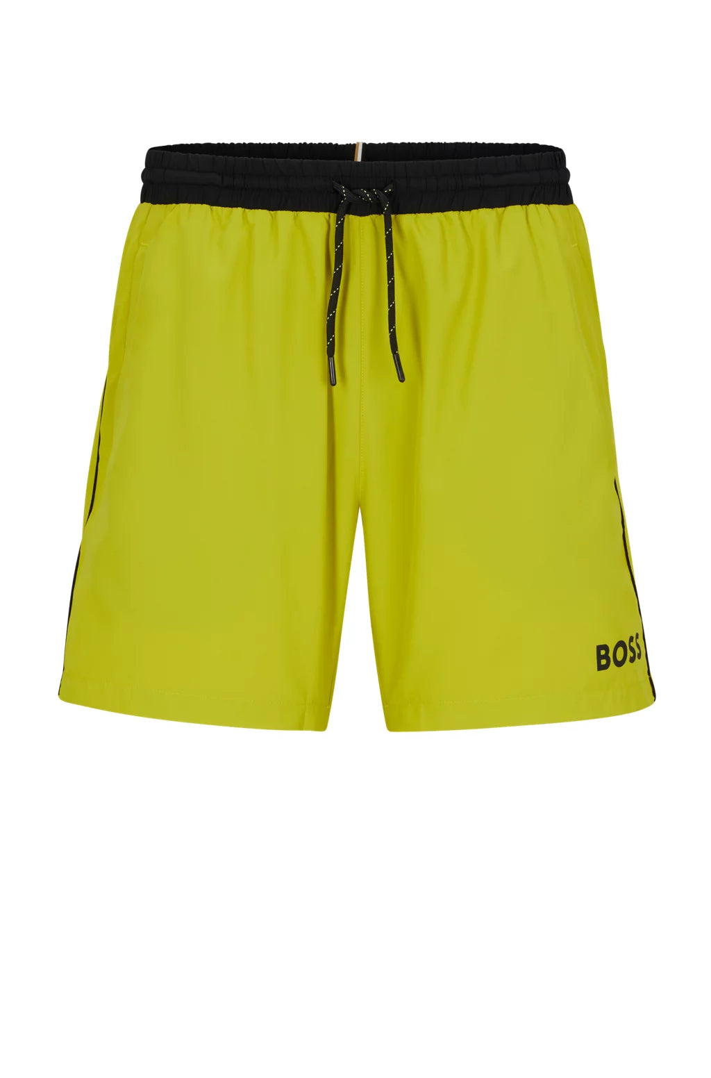 Prix régulier $44.00 CADShort de bain contemporain par BOSS. Confectionné dans une matière à séchage rapide, ce short de bain entièrement doublé présente une taille élastiquée et un logo BOSS contrasté.