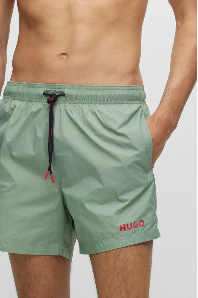 Prix régulier $44.00 CADShort de bain léger de Hugo dans une coupe sportive. Ce short de bain confortable à séchage rapide est doté d'une taille élastique, de poches latérales avant, d'une poche arrière, de cordons de serrage griffés et est entièrement doublé d'un tissu contrasté...