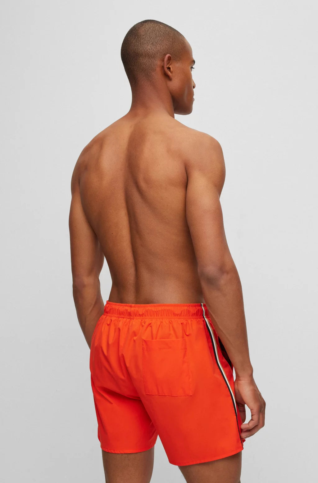 un short de bain boss entièrement doublé orné de rayures emblématiques et d’un logo. 100% polyester (recyclé), doublure: 100% polyester charte de grandeur (boss-50491594-821)