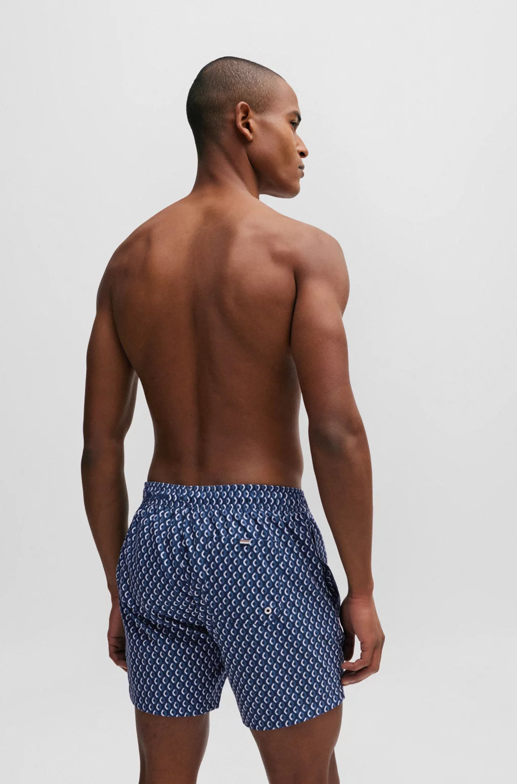 Un short de bain BOSS entièrement doublé, confectionné en matière à séchage rapide et orné d’un micro imprimé ainsi que d’un logo sur le côté gauche.