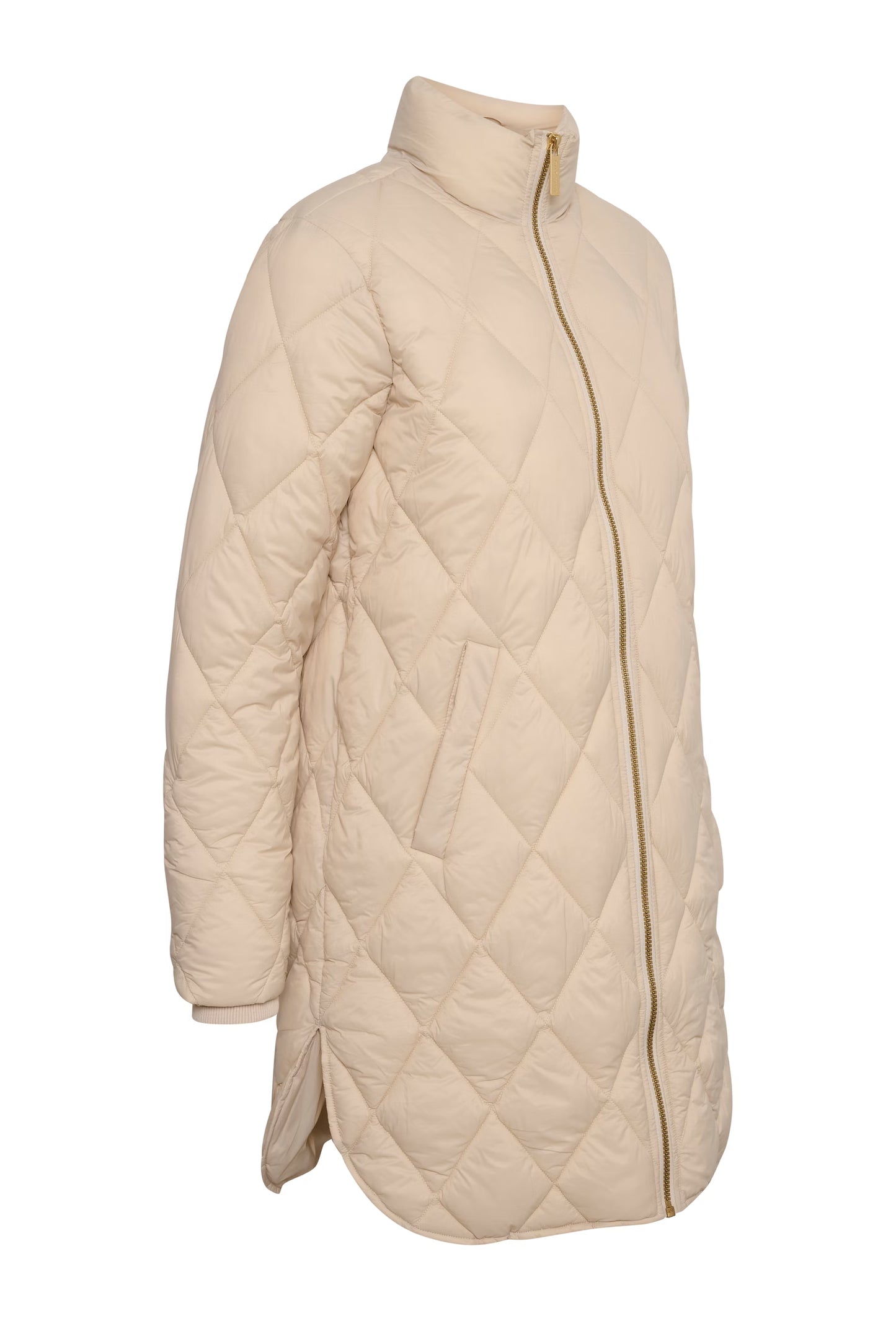 Découvrez la veste matelassée pour femme à manches longues et fermeture éclair intégrale. Sa coupe droite et son col montant offrent un confort élégant et une polyvalence idéale au quotidien.