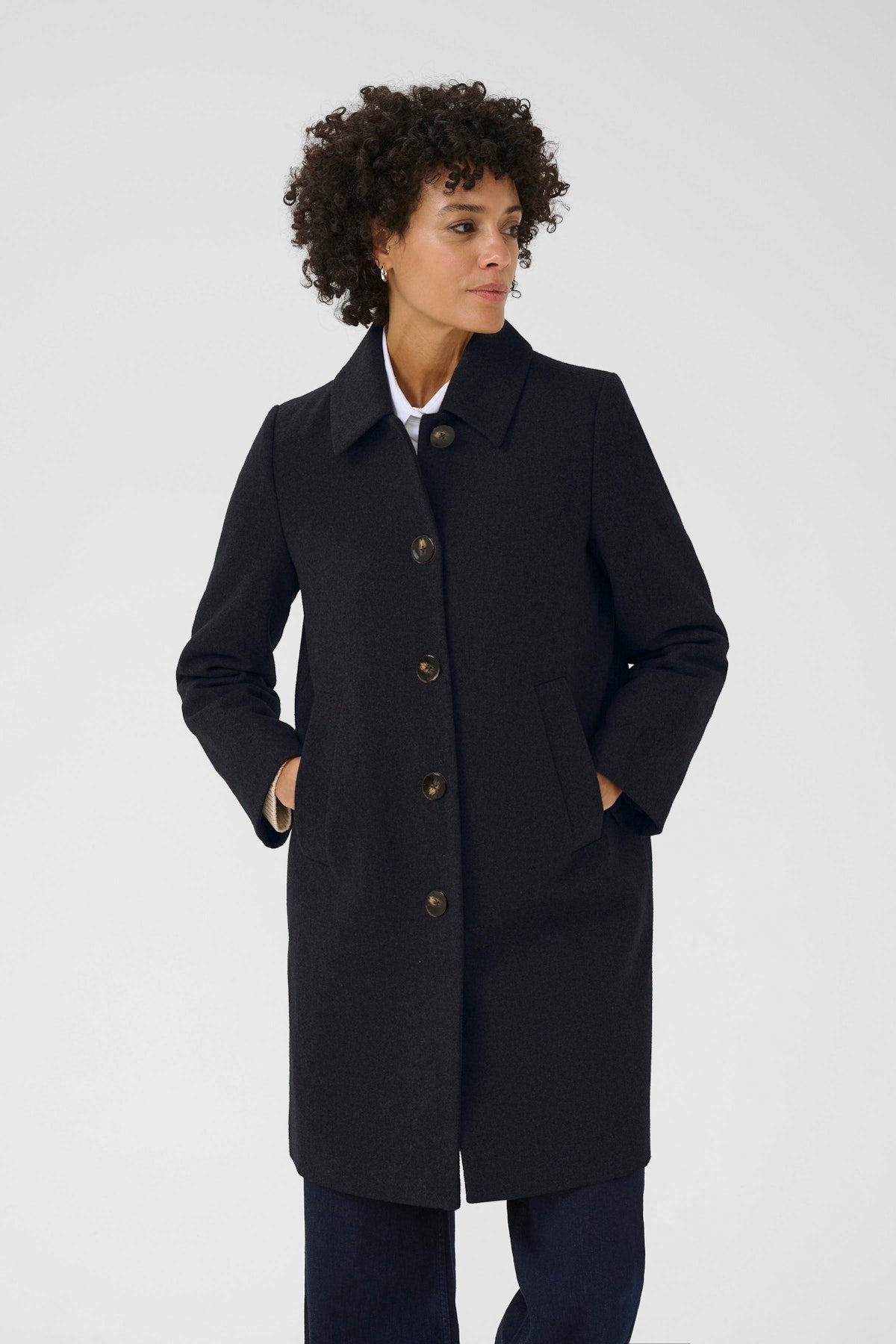 Élégant et intemporel, le manteau Kamillas de la marque Part Two se distingue par sa coupe droite et épurée. Confectionné dans un tissu doux et chaud, il offre confort et style au quotidien. Sa silhouette minimaliste est rehaussée par un col à revers classique, une fermeture boutonnée et de discrètes poches latérales, parfaites pour allier fonctionnalité et raffinement.