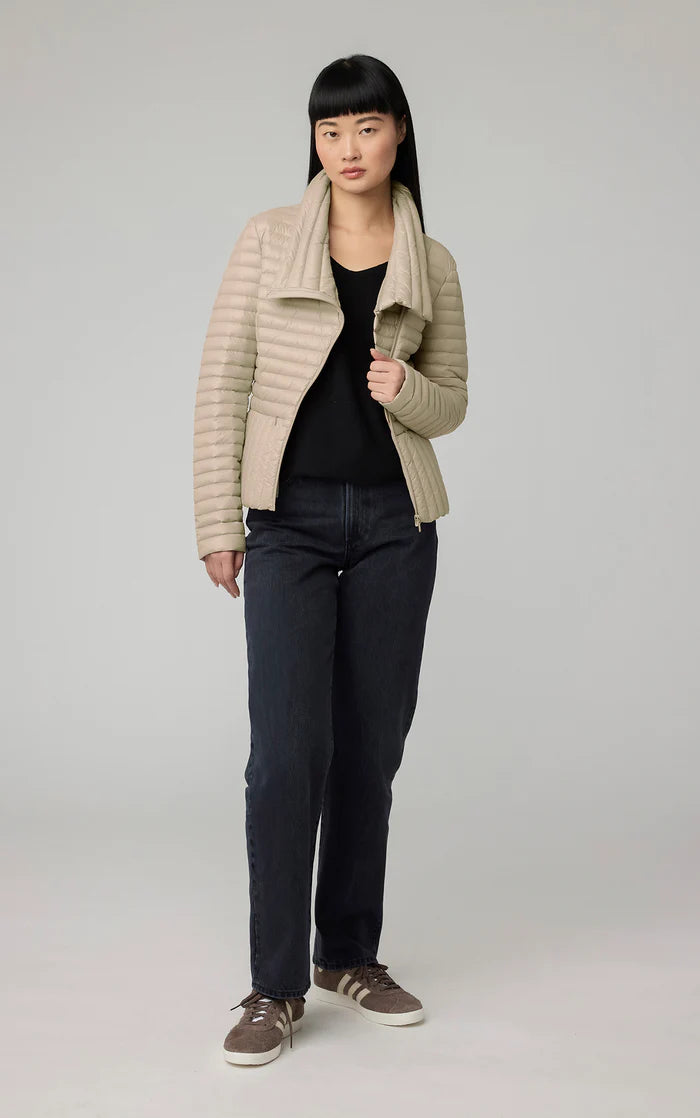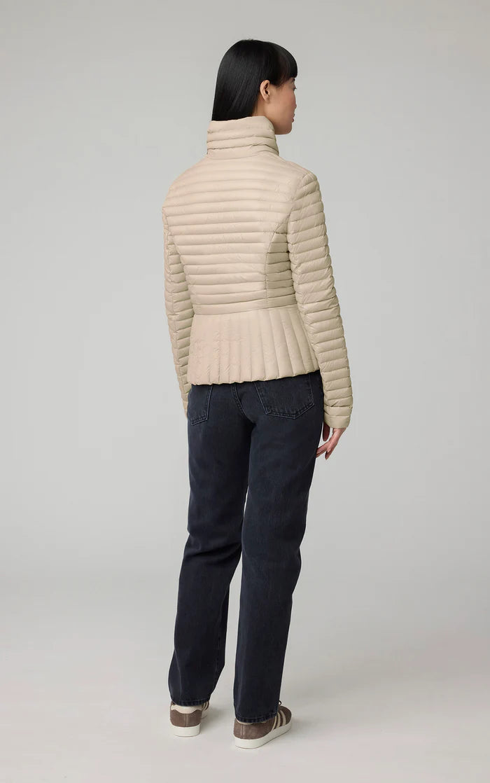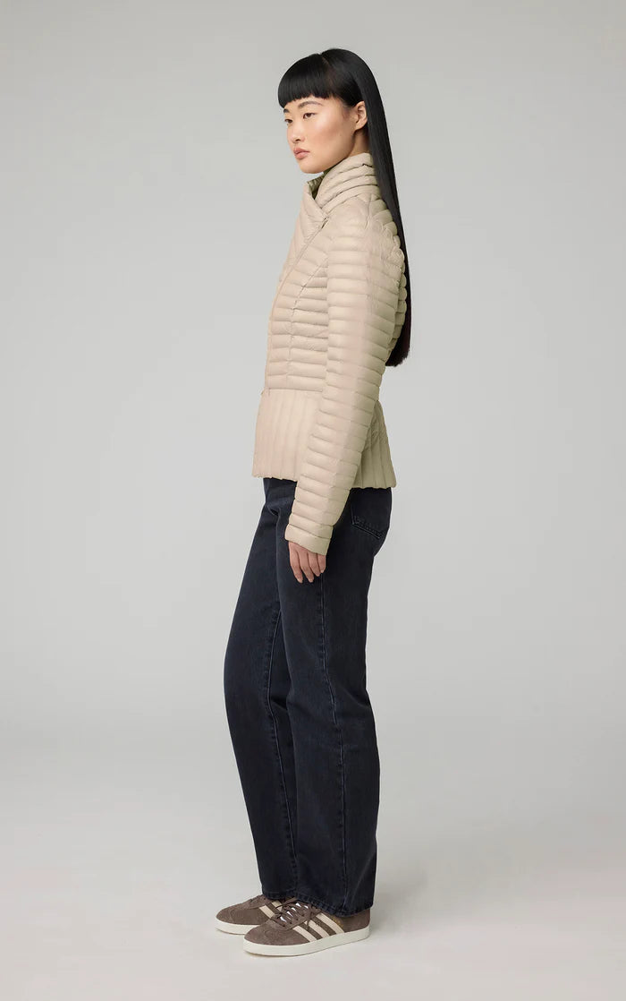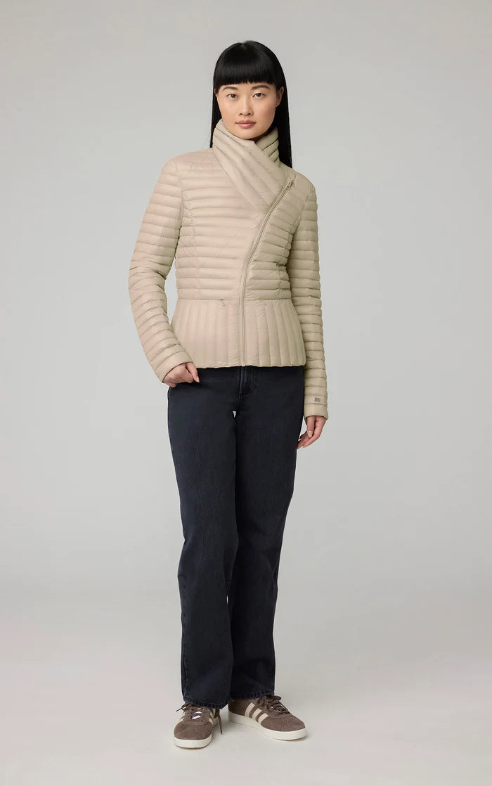 Le BRANDY de SOIA & KYO est une doudoune ultra légère qui se range dans un sac de transport. Il est conçu avec un élégant col croisé qui se termine par une fermeture éclair asymétrique sur le devant. La coque est fabriquée à partir de nylon 100 % recyclé et remplie de duvet certifié RDS d'origine responsable. Fini avec un mélange avant-gardiste de matelassage canal et vertical.