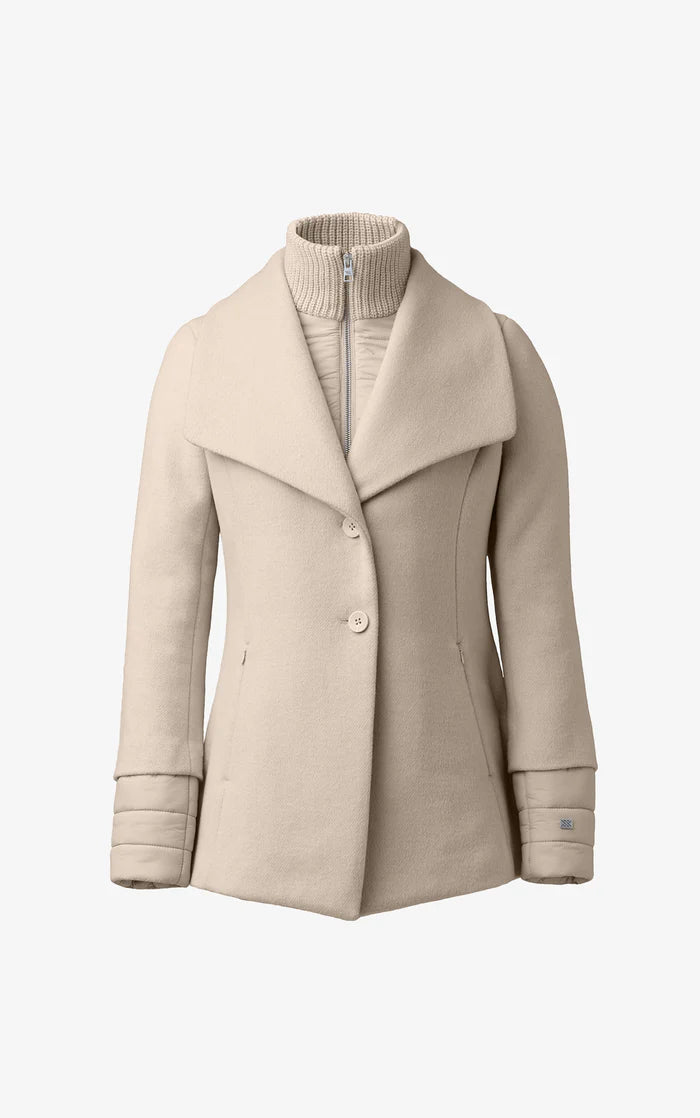 Le FRIEDA de SOIA & KYO fait également office de manteau en laine et de doudoune. À l’extérieur se trouve un mélange de laine incroyablement doux avec un col à revers chic et une fermeture boutonnée simple. Des détails doudounes confortables accentuent le col et les poignets pour offrir un style et une chaleur incomparables.