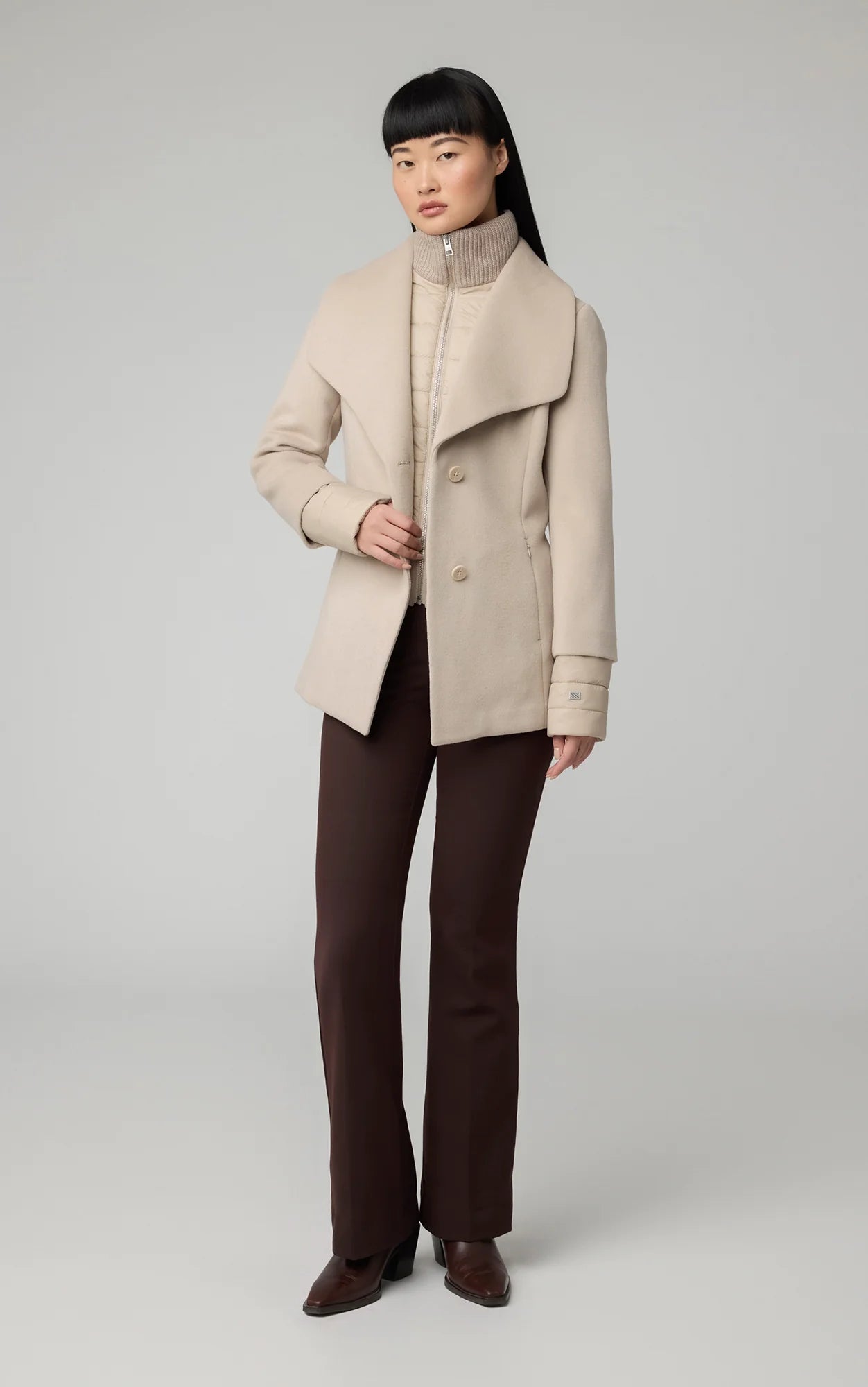 FRIEDA par SOIA & KYO est un manteau en laine ajusté aux superpositions soignées. Un plastron amovible, un col en maille côtelée et des poignets bouffants offrent chaleur et volume. Sa fermeture boutonnée et ses poches zippées invisibles lui confèrent un style classique et épuré.