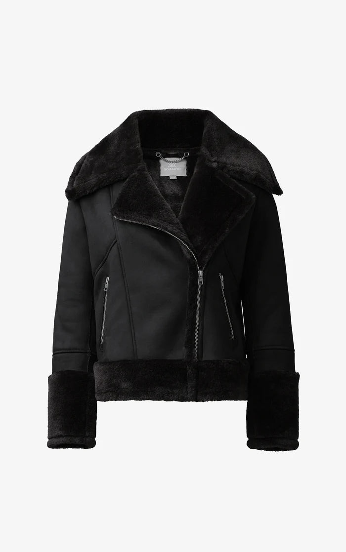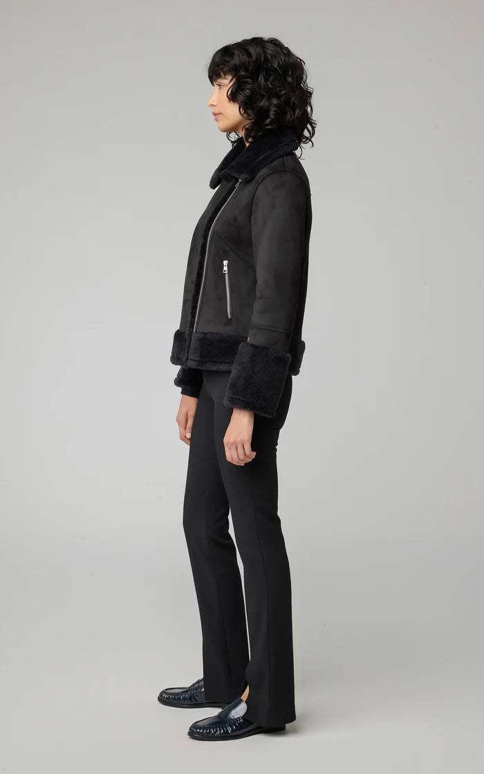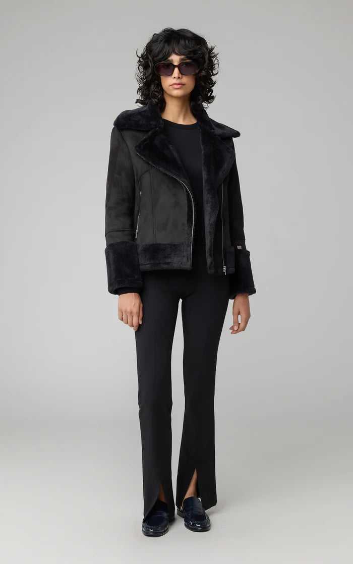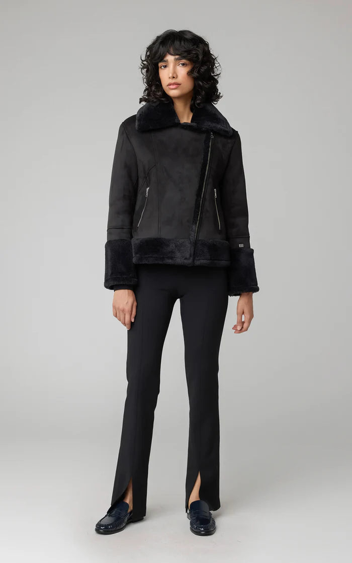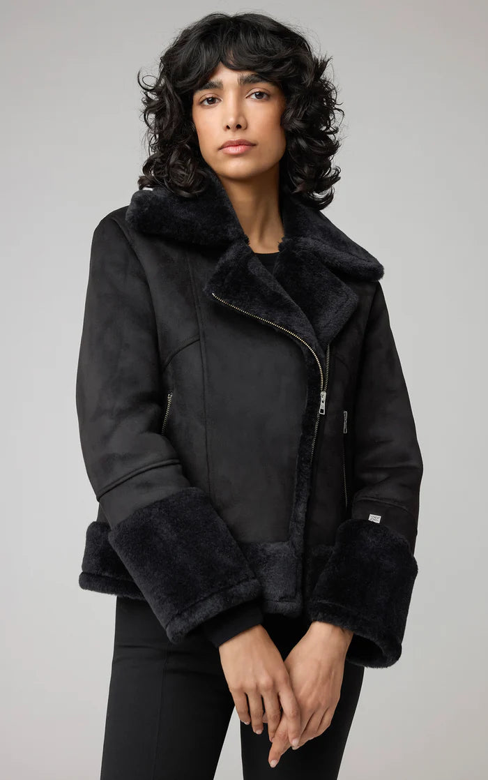 La PHOEBE de SOIA & KYO est une veste d'inspiration moto fabriquée en faux sherpa luxueux. Il possède tous les détails que vous attendez, notamment un col motard et une fermeture éclair asymétrique sur le devant. Les détails inattendus et confortables en fausse fourrure vont au-delà pour en faire un incontournable de la mode par temps frais.