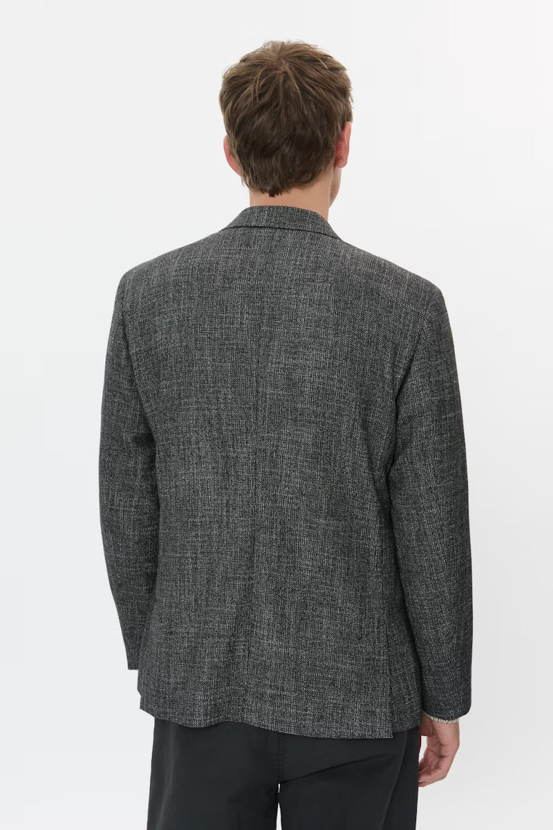 Ce blazer pour homme présente une coupe ajustée avec des revers crantés classiques, des épaules structurées et une fermeture à deux boutons. Conçu pour un style polyvalent, ce blazer offre une élégance intemporelle et un confort optimal au quotidien. Notre mannequin mesure 1,89 m et porte une taille 50.