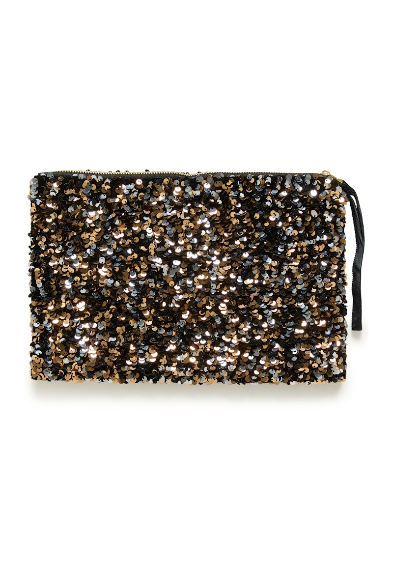 Cette petite pochette est recouverte de sequins noirs, dorés et argentés qui reflètent la lumière et créent un look saisissant. Elle est dotée d'une fermeture zippée et d'une bandoulière pratique. Parfaite pour les fêtes, les dîners ou pour habiller une tenue simple avec élégance.
