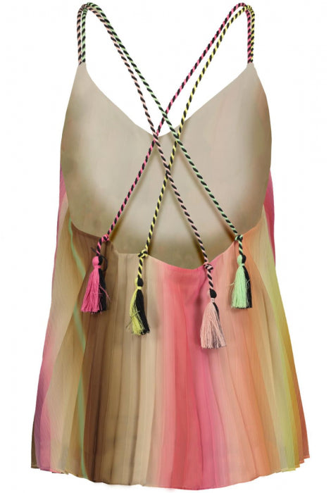 Prix régulier $84.00 CADHaut plissé coloré par Scotch & Soda. Ce modèle a un décolleté en V et des bretelles spaghetti tressées qui se croisent dans le dos.