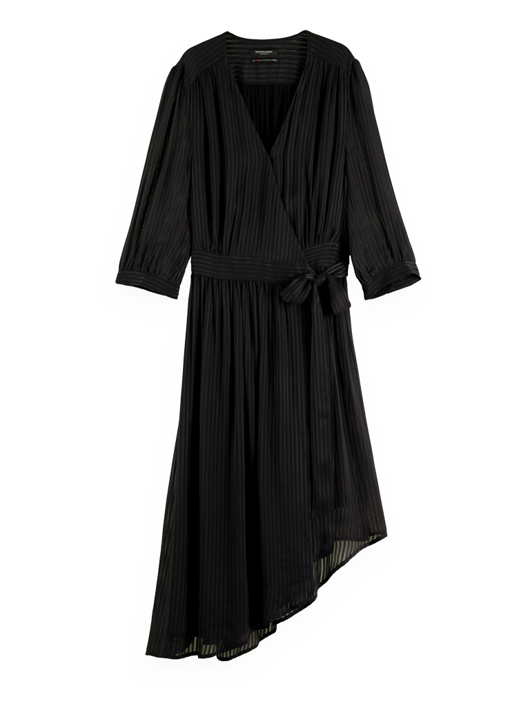 Prix régulier $79.00 CADmatière : 100% viscose - modèle asymétrique- fermeture à nouer- manches trois quarts- col en v charte de grandeur (scot-174922-0008)