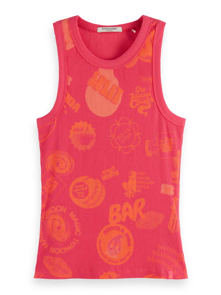 Prix régulier $29.00 CADCe débardeur côtelé ajusté arbore un imprimé intégral pour un look audacieux et facile à porter. Léger et extensible, il vous accompagnera tout au long de la journée.