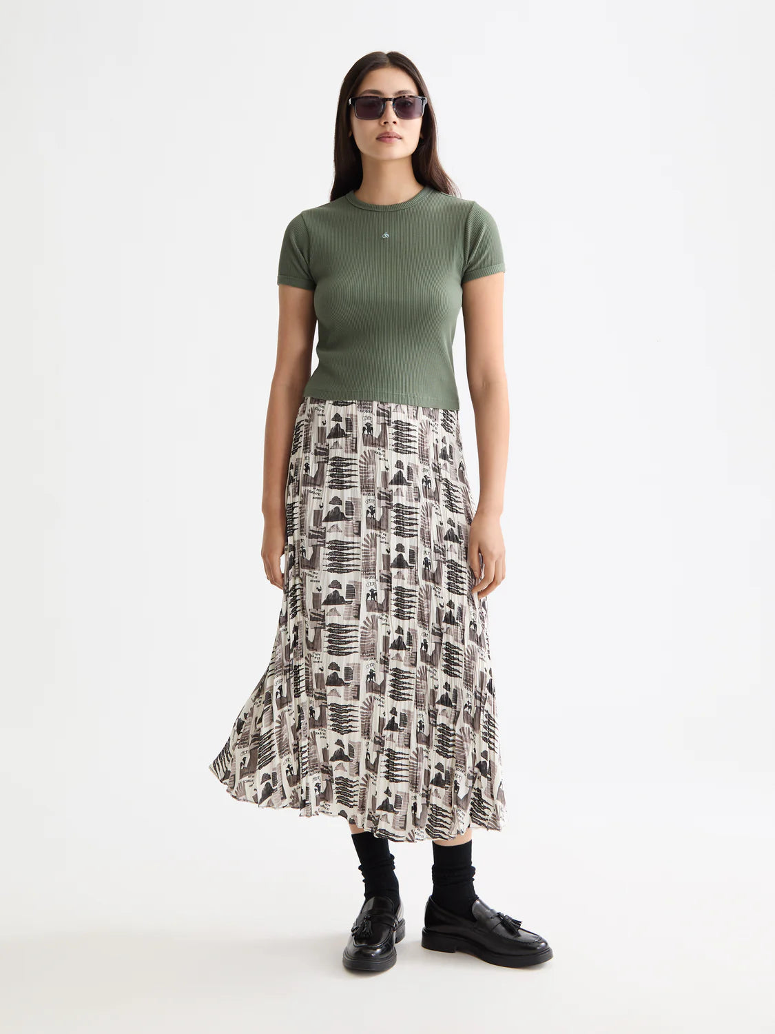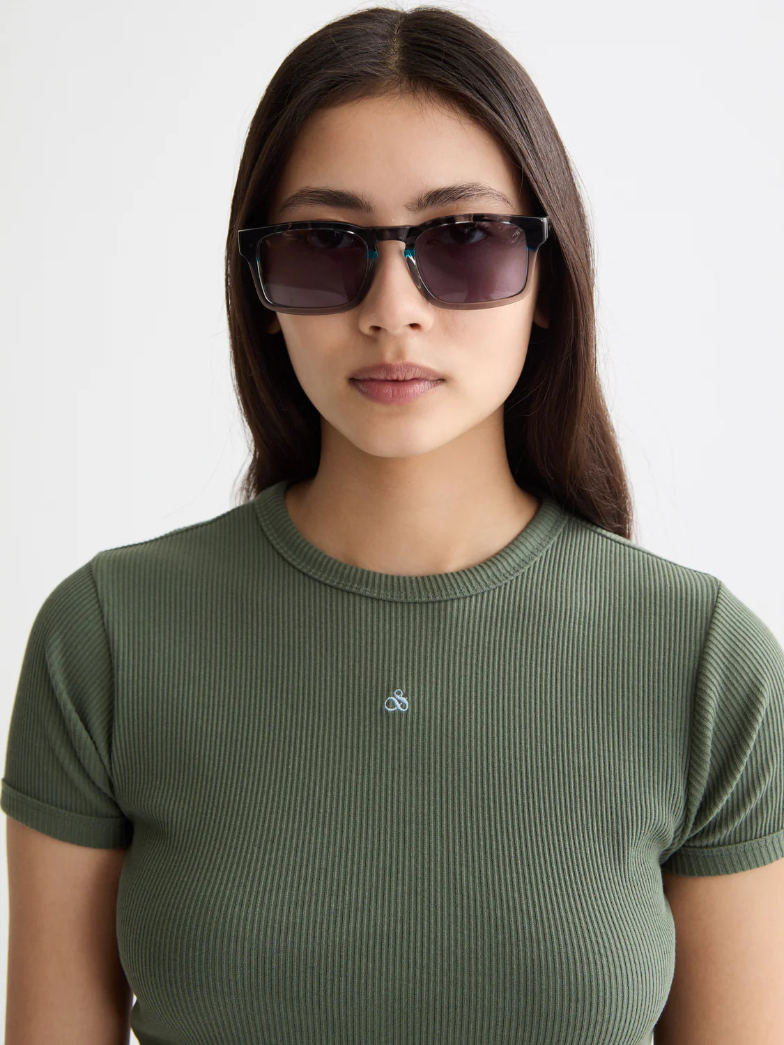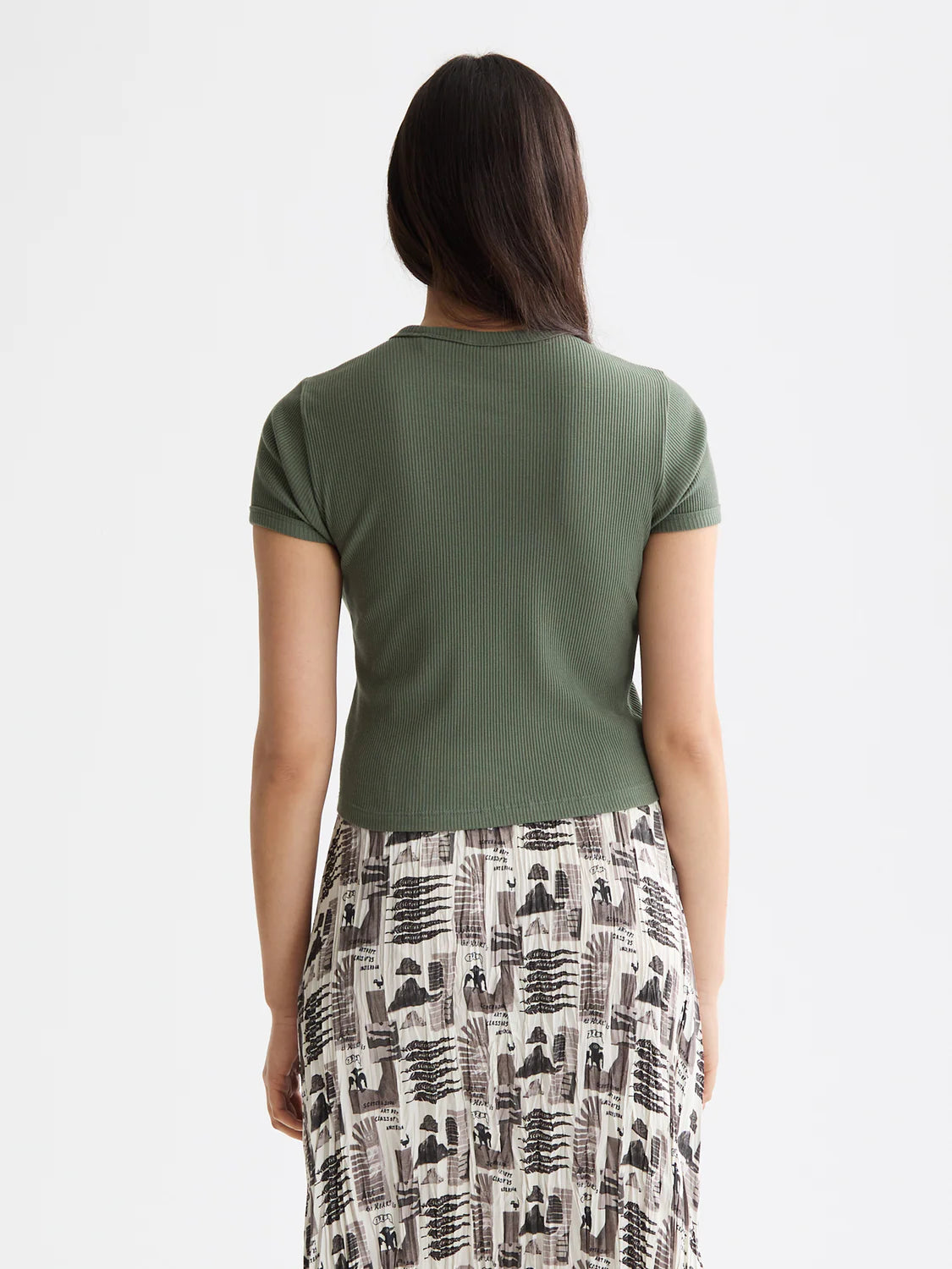Doux et extensible, ce t-shirt en côtes fines épouse délicatement la silhouette grâce à sa coupe près du corps raffinée.