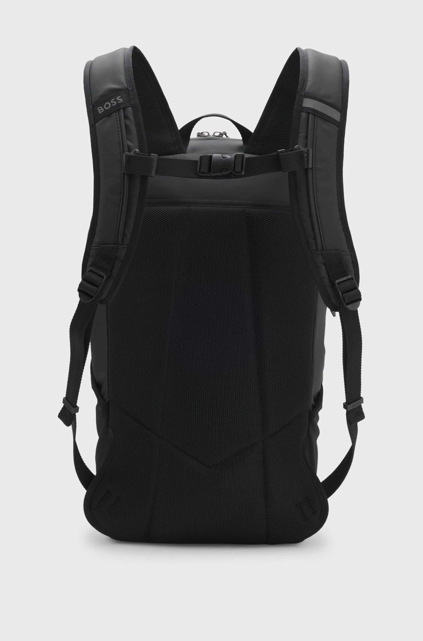 Confectionné en tissu synthétique enduit avec des détails réfléchissants décoratifs, ce sac à dos BOSS pour homme est un indispensable pour les personnes actives. Il est doté de deux poches en filet. Le tissu synthétique enduit, parfois appelé simili cuir, imite le cuir véritable et présente un aspect mat, brillant, lisse ou texturé. Dimensions : 47,5 x 26,5 x 24,5 cm.