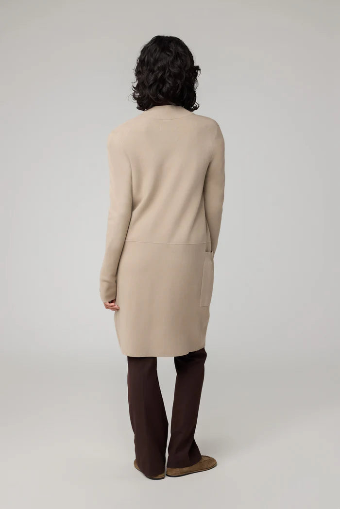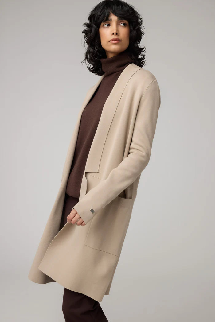 Le BENELA de SOIA & KYO est un coatigan de luxe avant-gardiste avec des revers et un col montant côtelé au dos. Il est fabriqué à partir de fibres de viscose Lenzing™ Ecovero™ dérivées de bois et de pâte durables. Portez-le à l'intérieur ou à l'extérieur.