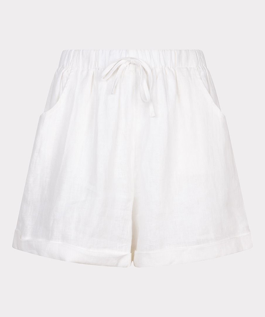 Prix régulier $62.00 CADShort à taille élastique, cordon de serrage, poches latérales et fausses poches passepoilées au dos. 100 % lin, il est facile à associer, par exemple avec les chemisiers assortis. Le mannequin mesure 1,73 m et porte une taille S.