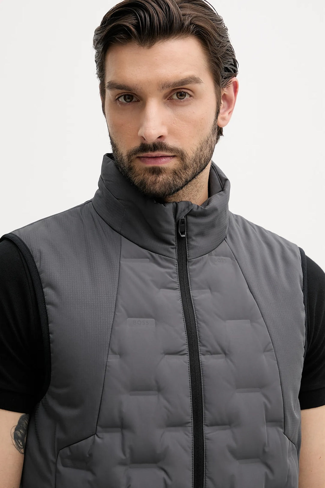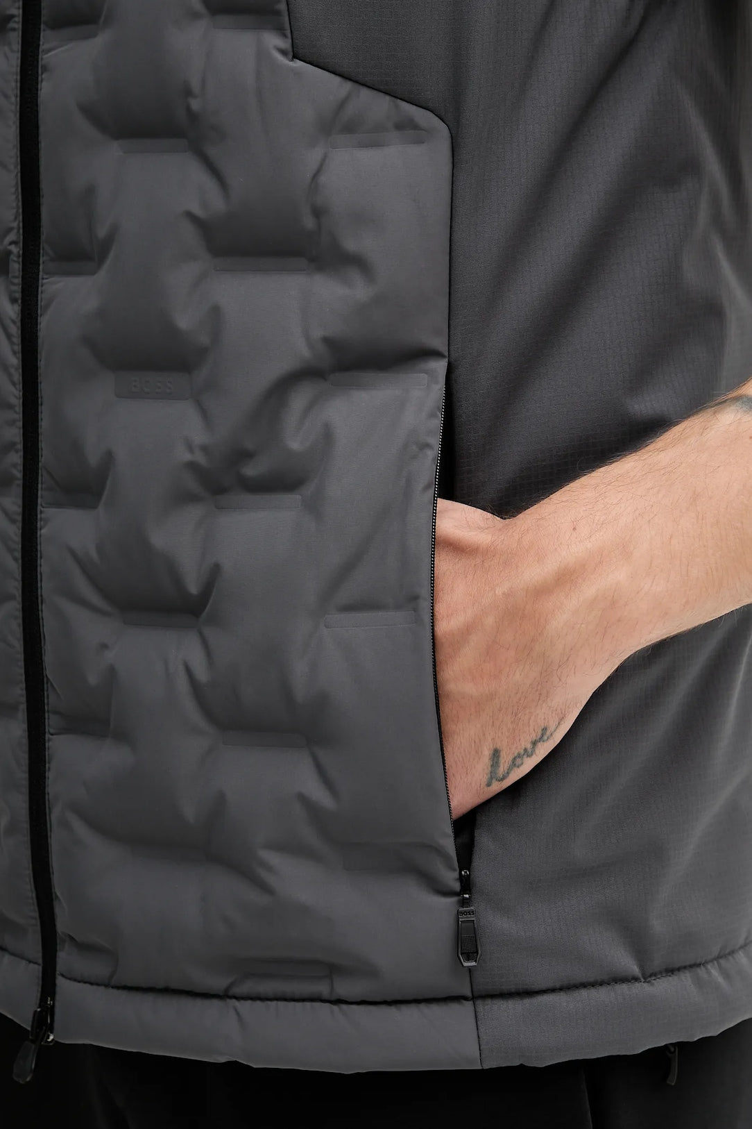 Doudoune sans manches de la collection BOSS Green. Cette doudoune sans manches est confectionnée dans une combinaison de tissus lisses et à motifs.