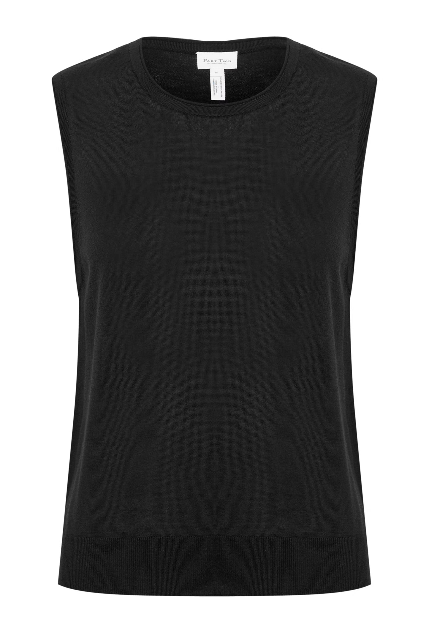 The model is 1.72 m tall and wears a size M. This sleeveless cotton-blend top features a round neckline and wide shoulders, creating a modern, clean look. Its soft fabric and ribbed hem make it ideal on its own or under a blazer or cardigan.
