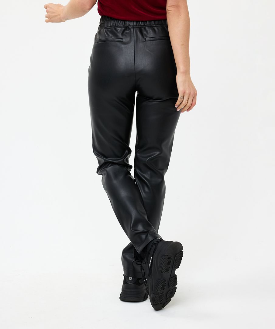 Regular price $49.50 CADComfortable vegan leather treggings. These sturdy treggings have a comfortable fit thanks to their slightly flexible cut, elastic waistband, and slit at the bottom of the pant legs.