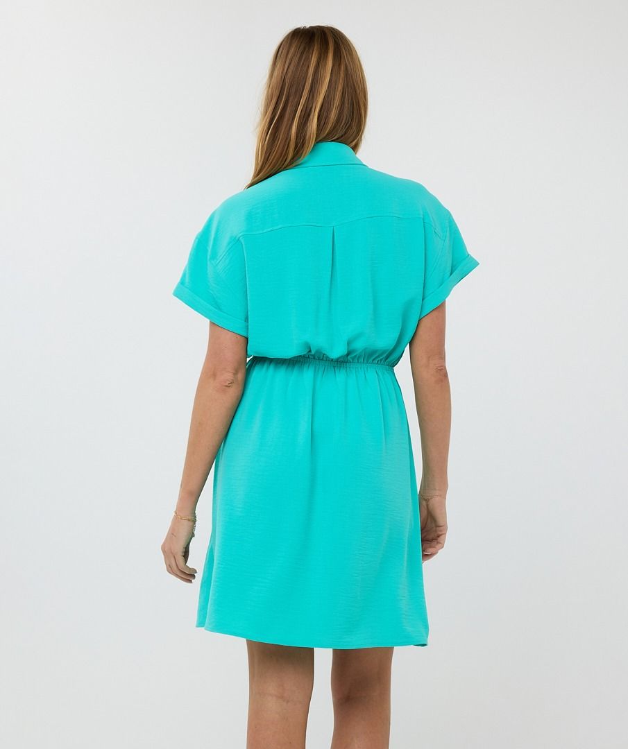 Regular price $52.00 CADShirt dress with wide, fancy sleeves and an elasticated waistband. You can wear it in multiple ways: casual with sandals, or chic with heels and a beautiful gold belt. The belt is not included. The model is 1.73 m tall and wears a size S.